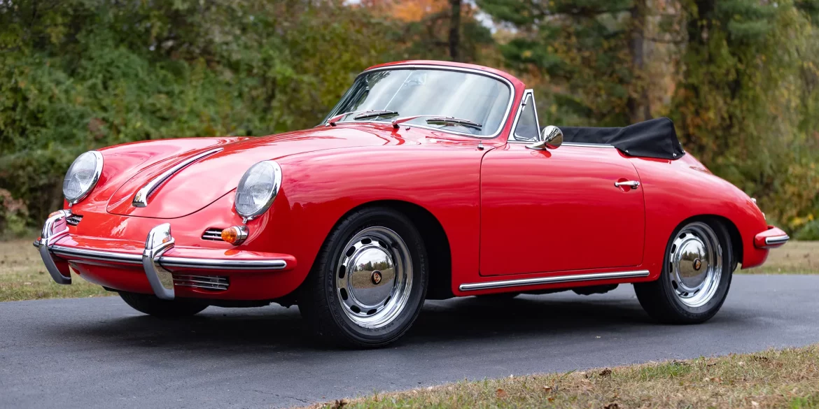 This 1965 Porsche 356C cabriolet remained with the same family from 1999 until 2025, and it underwent a cosmetic refurbishment in 2014. The car is powered by a replacement 1.6-liter SC flat-four paired with a four-speed manual transaxle and is finished in Signal Red over black leather. Equipment includes a...