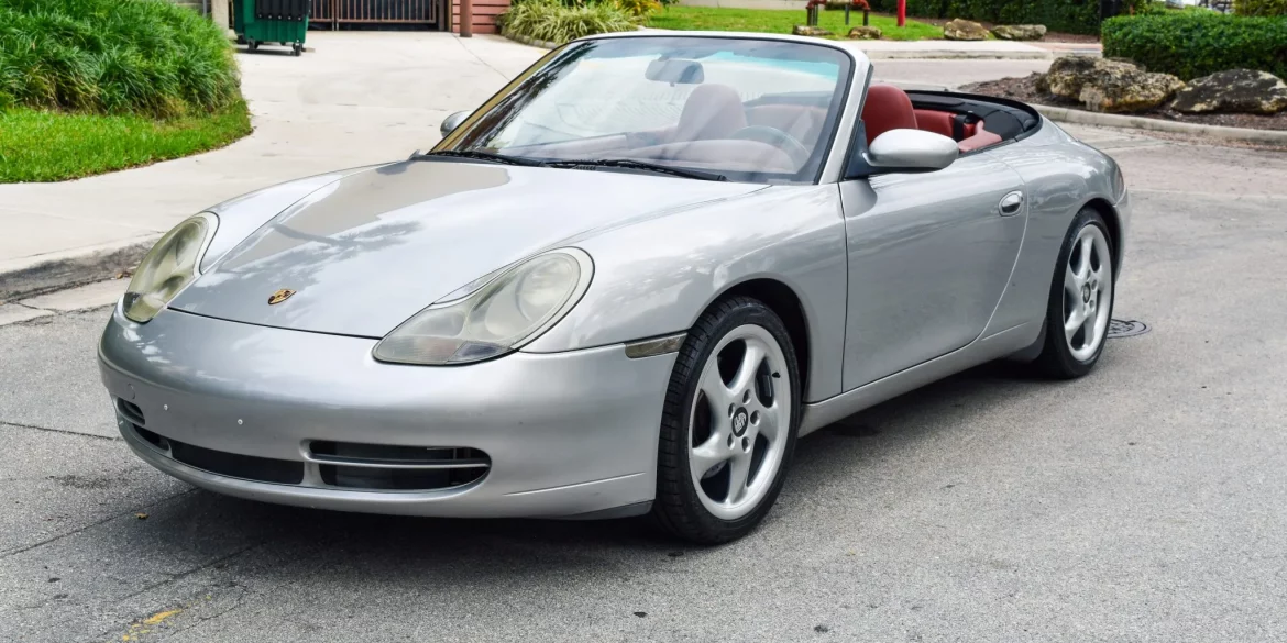 This 2000 Porsche 911 Carrera cabriolet was specified in Arctic Silver Metallic over Boxster Red leather, and it was also optioned with the Full Leather, Carbon Interior, and Power Seat packages. Power is provided by a 3.4-liter M96 flat-six paired with a six-speed manual transaxle, and the car is further equipped...