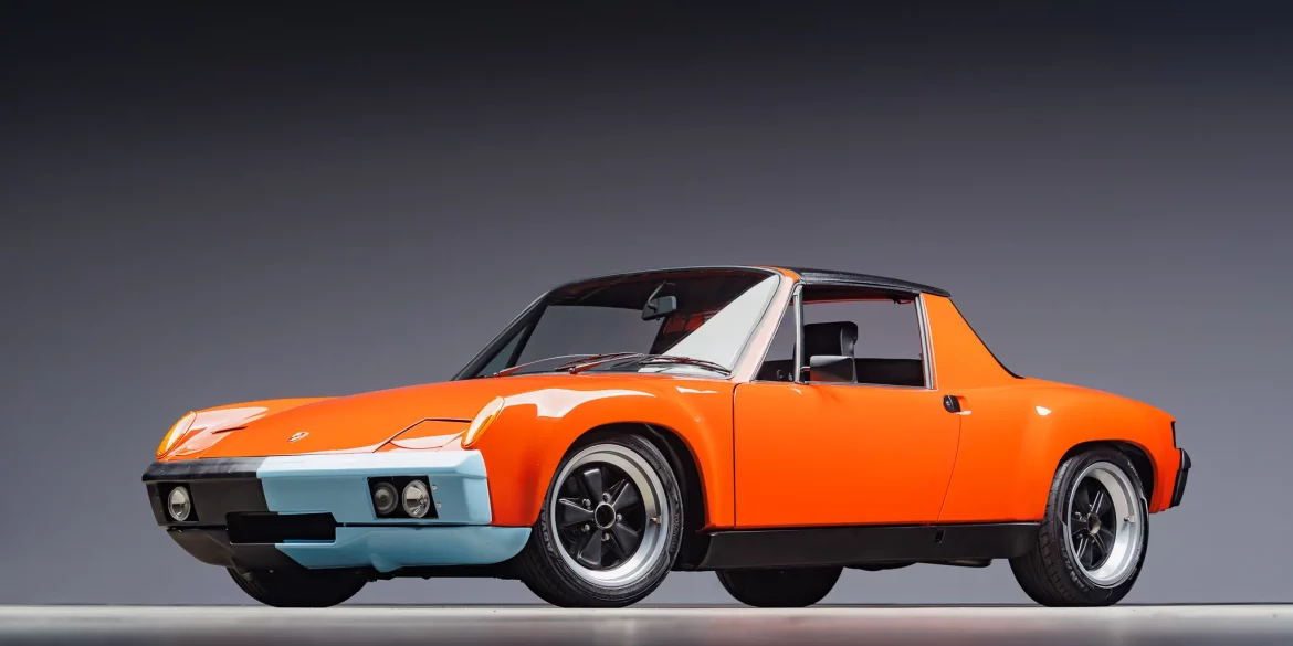 This 1973 Porsche 914 was modified under prior ownership with the installation of GT-style bodywork and a dual-spark 3.2-liter flat-six assembled with JE 10.5:1 pistons, Patrick Motorsports headers, and more. Refinished in red over a black interior, the car also has a five-speed manual transaxle, a front-mounted oil cooler, 16″...