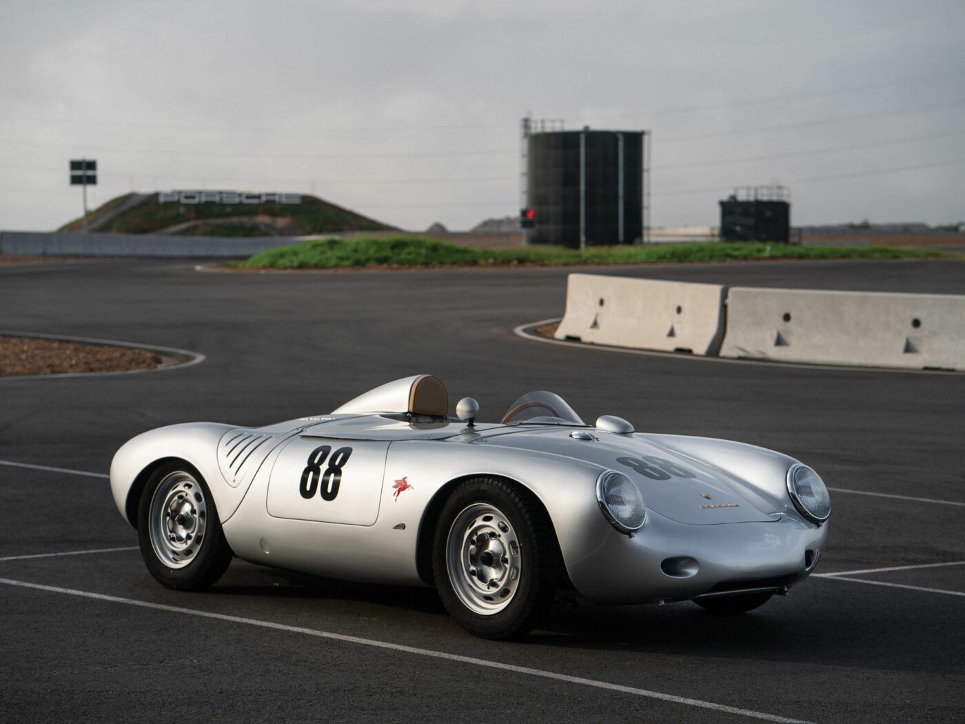 Appearing at the end of 1956, the 550A differed from its predecessor by use of a full tube spaceframe with several rear supportive cross-members, rather than the heavier welded-up sheet steel internal structure of the 550. Construction of the curvaceous and sleek hand-beaten aluminum alloy body shell was outsourced to Karosserie Wendler of Reutlingen. While visually similar to the 550, the 550A could be identified by new louvered access panels behind the doors. There were small air intake ducts in the nose. Most 550As offered a small molded windshield in front of the driver and a headrest fairing, and a metal tonneau cover closed off the passenger side of the spartan cockpit.