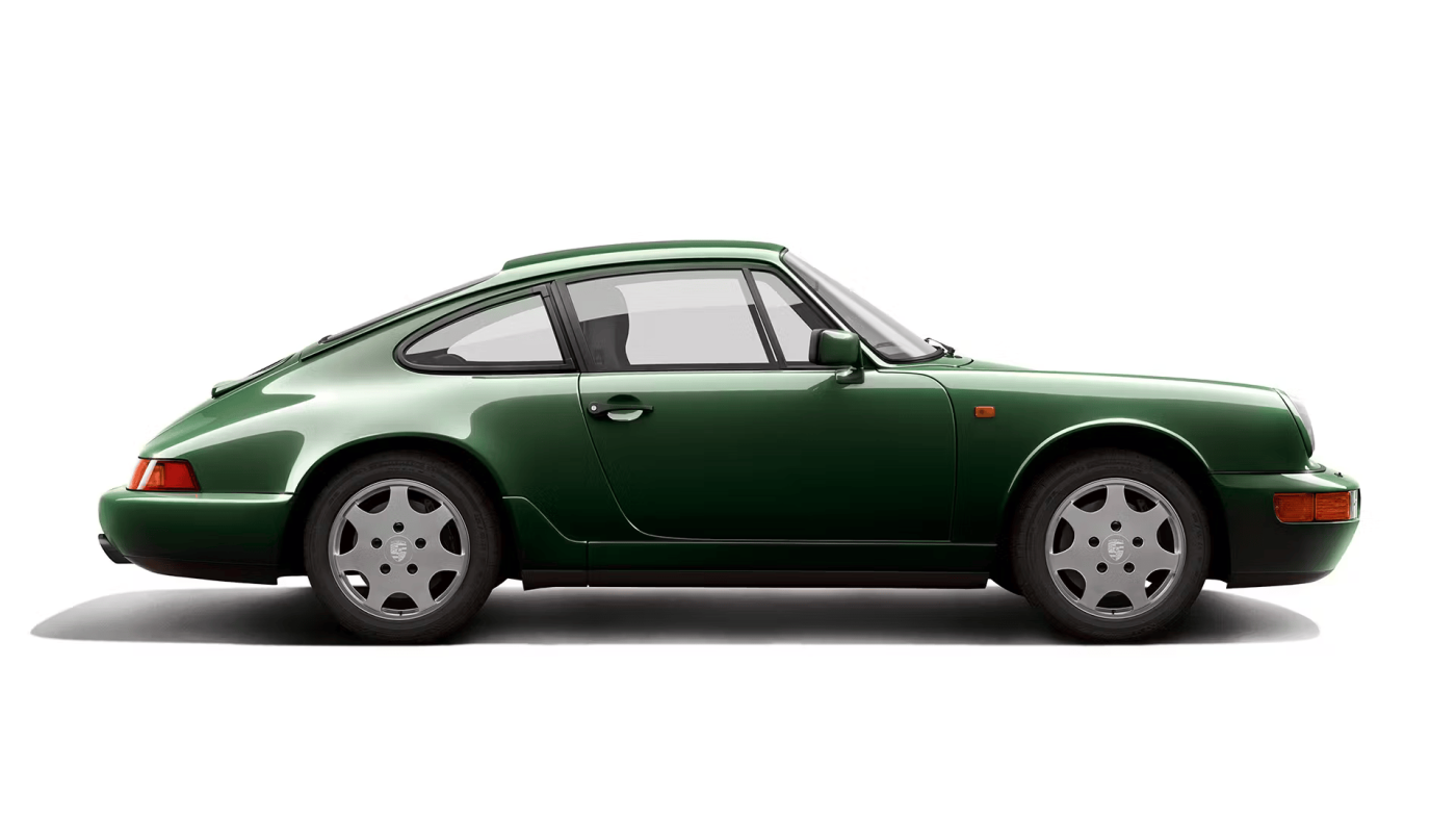 The Porsche 911 (964 generation) was produced from 1989 to 1994, serving as the third generation of the 911 and marking the bridge between the classic air-cooled era and the modern age. It debuted in 1989 with the Carrera 4 (C4) — the first 911 to feature all-wheel drive, derived from Porsche’s 959 supercar technology — followed shortly by the rear-wheel-drive Carrera 2 (C2) in 1990. Over its production run, the lineup expanded to include Coupé, Targa, and Cabriolet body styles, as well as high-performance variants like the Turbo (1990–1994), RS (1992), and Speedster (1993–1994).
