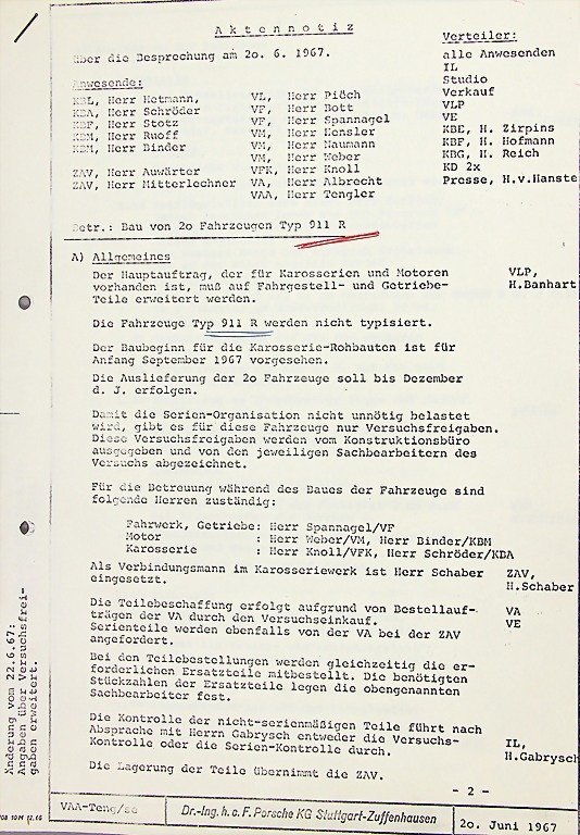 06.20.1967, The Memorandum of preparing to release a series of 20 Porsche 911R (Deutsch)