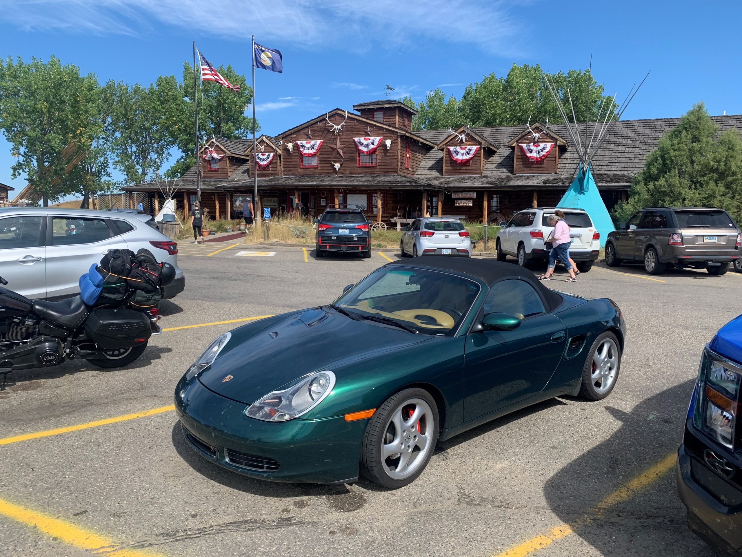 Our first stop was for gas just across the state line in Wyoming. At $4/gallon I note it’s a dollar cheaper than in Washington. While I pumped, a local wandered over and said how much he admired the “Pooorsh” and its color. After filling up with 91 Octane and grabbing some “genuine” Buffalo Jerky, we left. Wyoming’s HWY 25 was posted at 80 mph, but most of the traffic was doing the thick end of 90.
