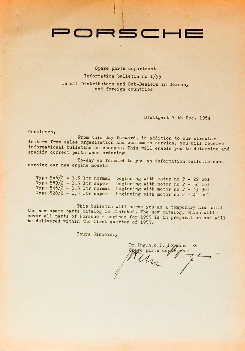 1954.12.07 Porsche Information Bulletin: New Engines Types