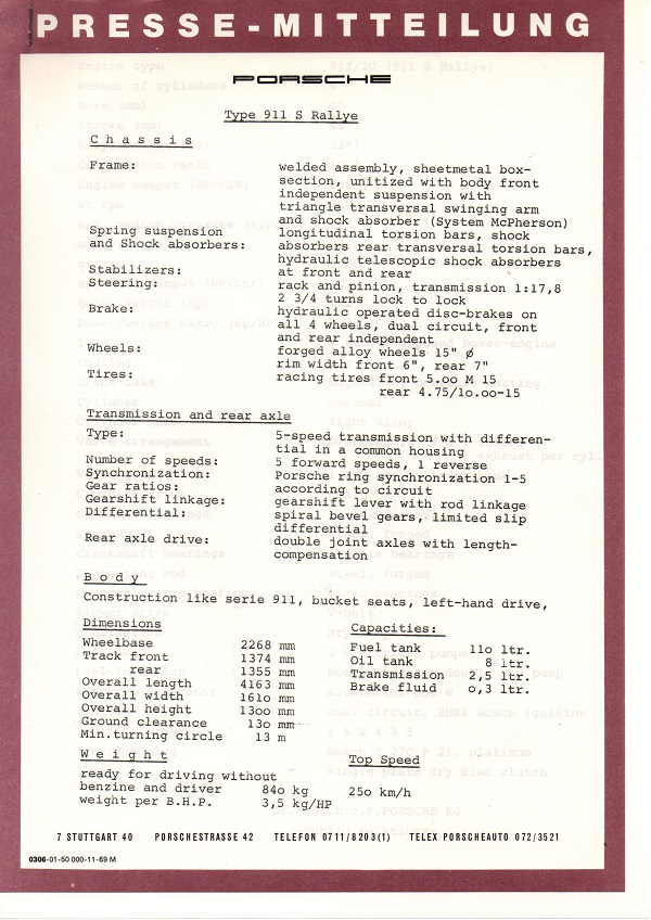 1970 Porsche 911 S 2.3 Press Release