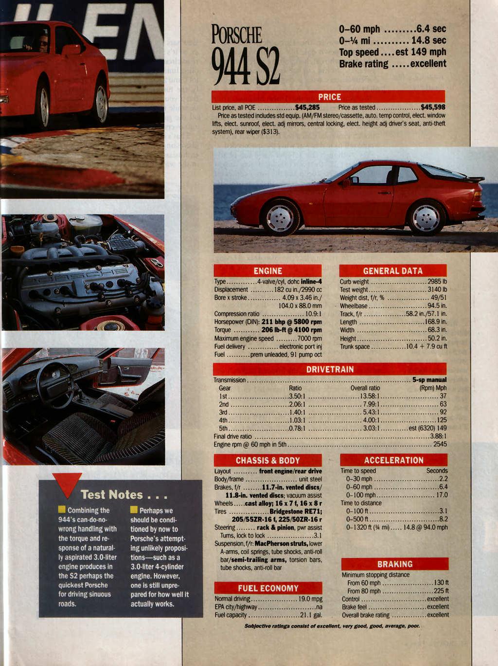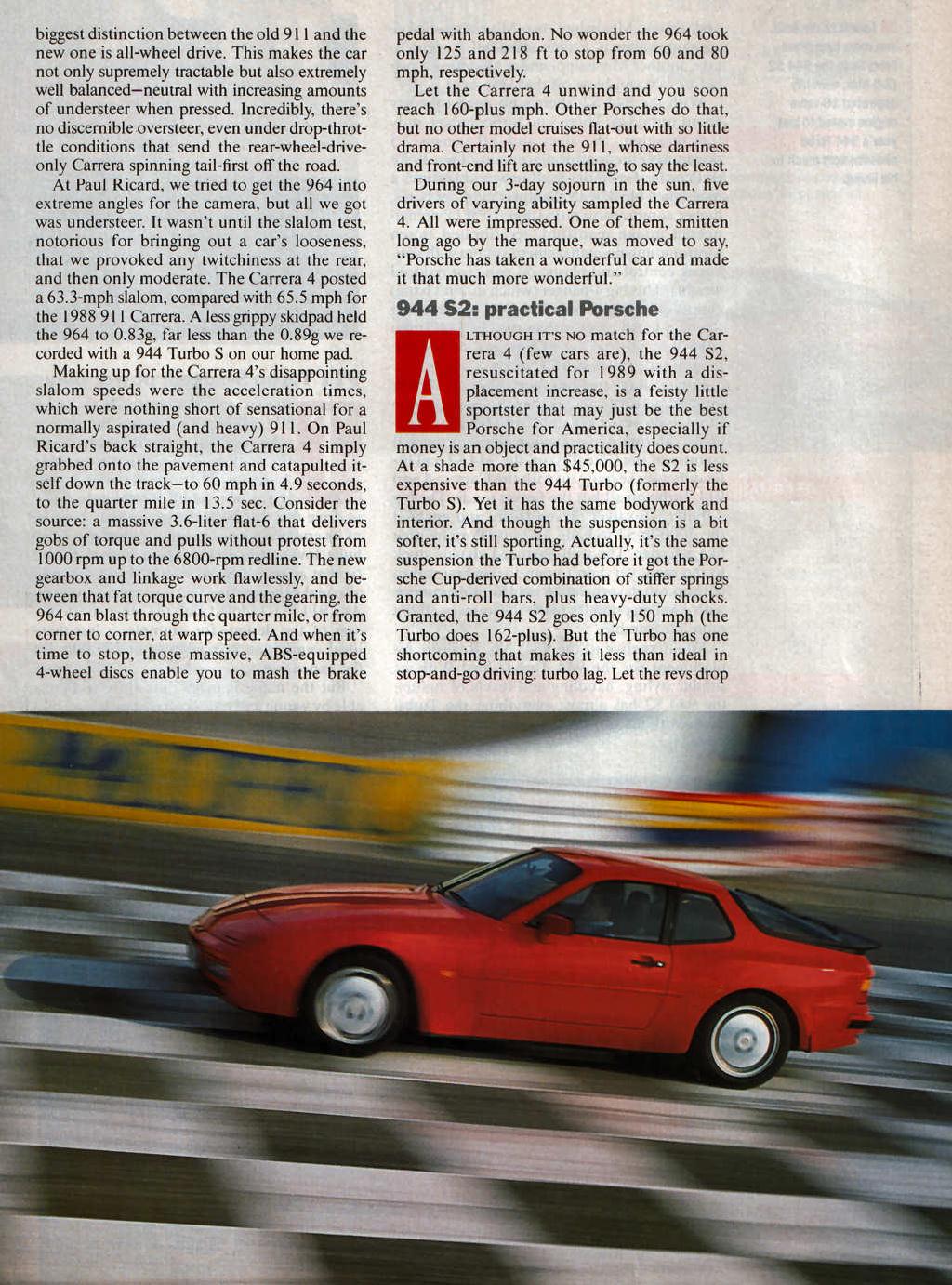 1989 MY: Porsche 944 S2, Porsche 964 Carrera 4, Porsche 930 Turbo