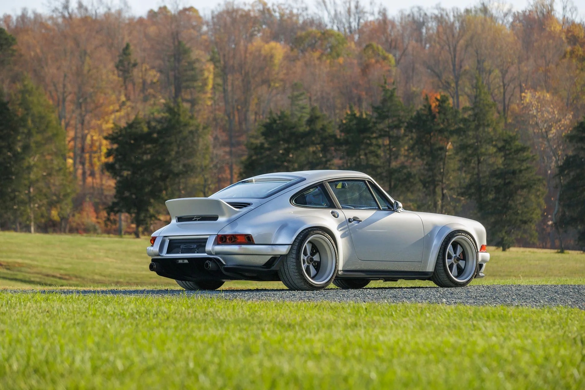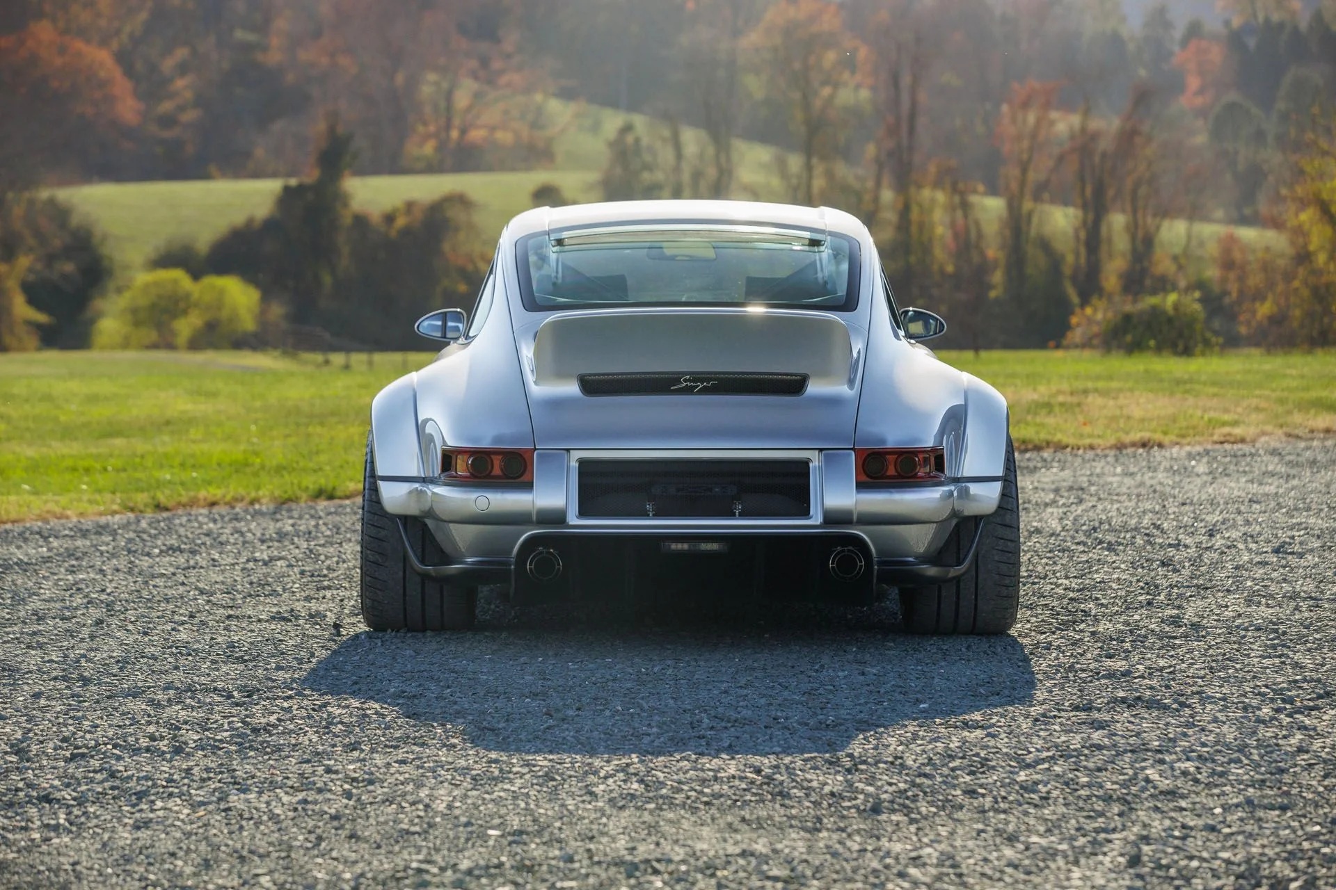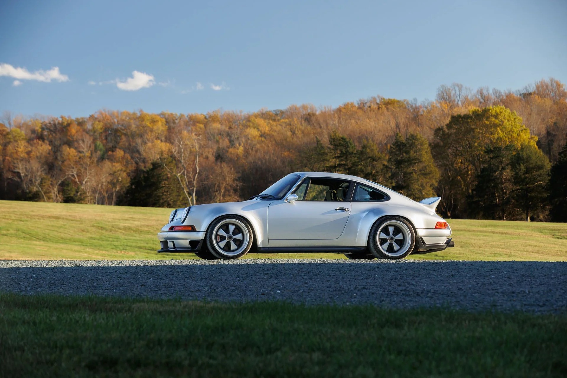 Originally a 1991 Porsche 911 Carrera 2 coupe, it was transformed by Singer into a high-performance lightweight masterpiece. Finished in a custom Fluid Silver paint ($42,550 option) and protected by full-body PPF, it features Black Titanium bead-blasted trim and Black-tinted satin visible carbon accents.