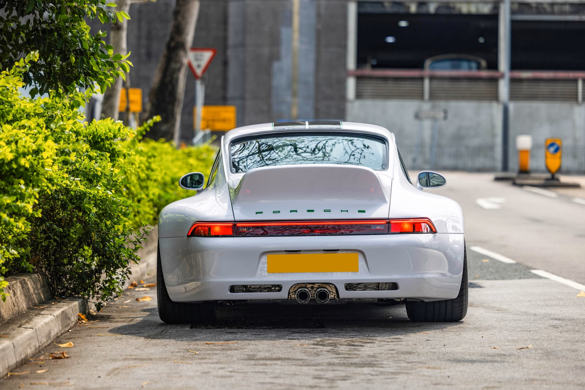 The process begins by stripping a donor 993 to its core. The shell is then meticulously restored and modernized with lightweight carbon fiber body parts for a dramatic wide-body look. Even the lighting gets a bespoke treatment with handcrafted aluminum and carbon fiber housings.