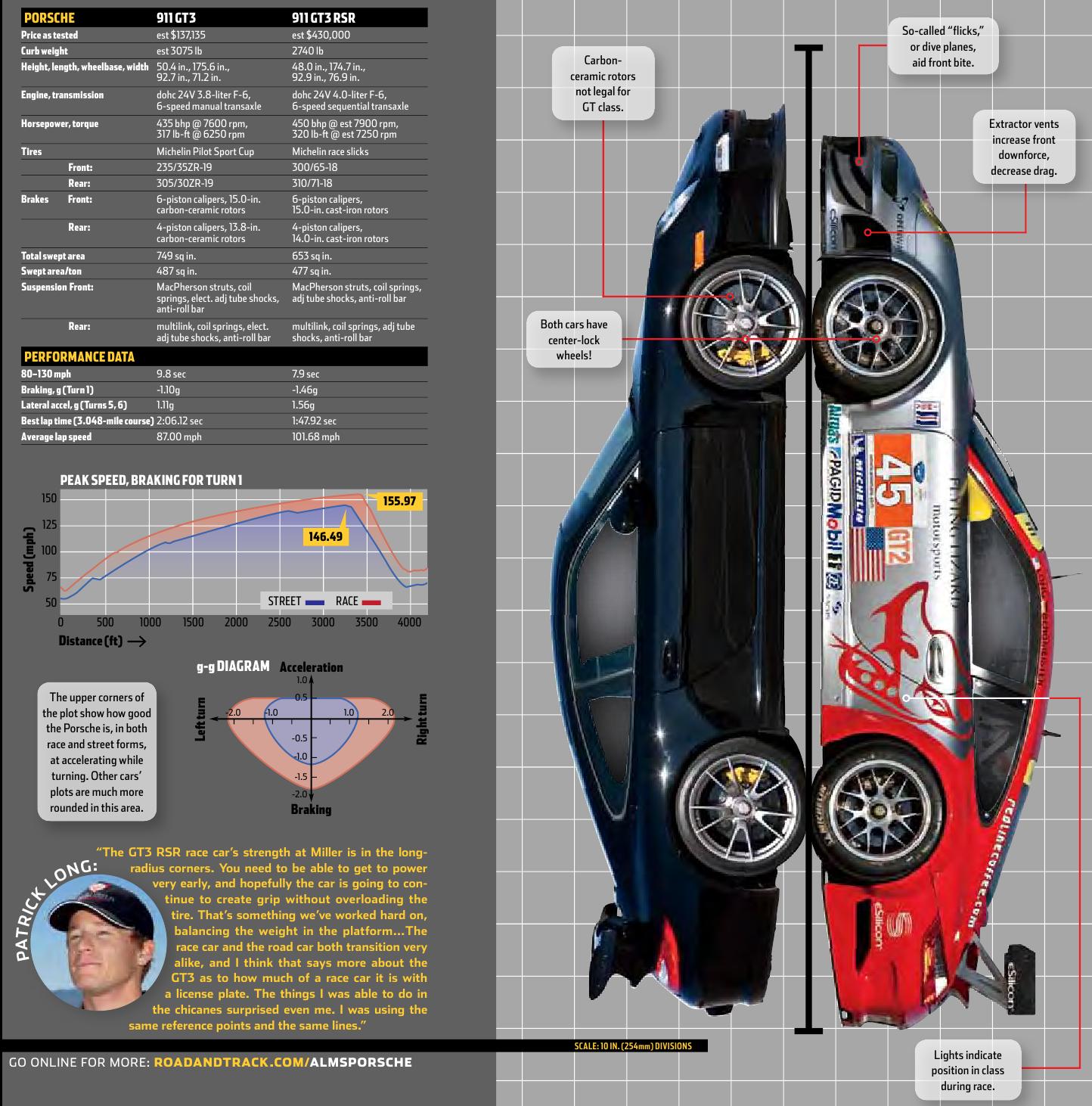 2010 Porsche 997 GT3 Mk II compared to 997 GT3 RSR ALMS (Road & Track mag.)