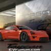 Together with Porsche Asia Pacific, the Sonderwunsch experts at Porsche Exclusive Manufaktur have created an extraordinary Taycan Turbo S. A special pigmented paint gives the fully electric sports car its incredible look. The color shifts with the light and from different angles.