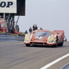 Following filming, 917-022 was purchased by Reinhold Joest of Team Auto Usdau and campaigned during the 1971 race season by drivers Willi Kauhsen, Joest, Angel Monguzzi and Jo Siffert. In 1975, 917-022 was acquired by Porsche factory driver Brian Redman. Redman eventually sold 917-022 to his friend and Le Mans-winning Porsche 917K driver Richard Attwood in 1977. Attwood refinished 917-022 in a red and white livery resembling the 1970 Salzburg 917K in which he secured Porsche’s first overall victory at the 24 Hours of Le Mans.