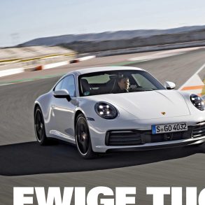 Porsche has significantly upgraded the standard equipment for the Carrera S. From a performance perspective, the improvements include Sport Exhaust with tailpipes in Silver, brakes taken from the previous generation 911 Carrera GTS models measuring 408 mm on the front axle and 380 mm on the rear axle and the aforementioned increase in horsepower. Updated dampers with optimized hydraulics are more responsive and improve ride refinement over the preceding model. Performance-focused standard features of the prior model remain intact, including Porsche Torque Vectoring Plus (PTV+) and staggered 20/21-inch Carrera S wheels. Porsche Ceramic Composite Brakes (PCCB) are available as an option, as is PASM Sport Suspension, which lowers ride height by 10 mm. Optionally available rear-axle steering offers increased agility at low speeds and greater stability at high speeds. If equipped, this system also includes a quicker steering ratio and revised front axle kinematics.