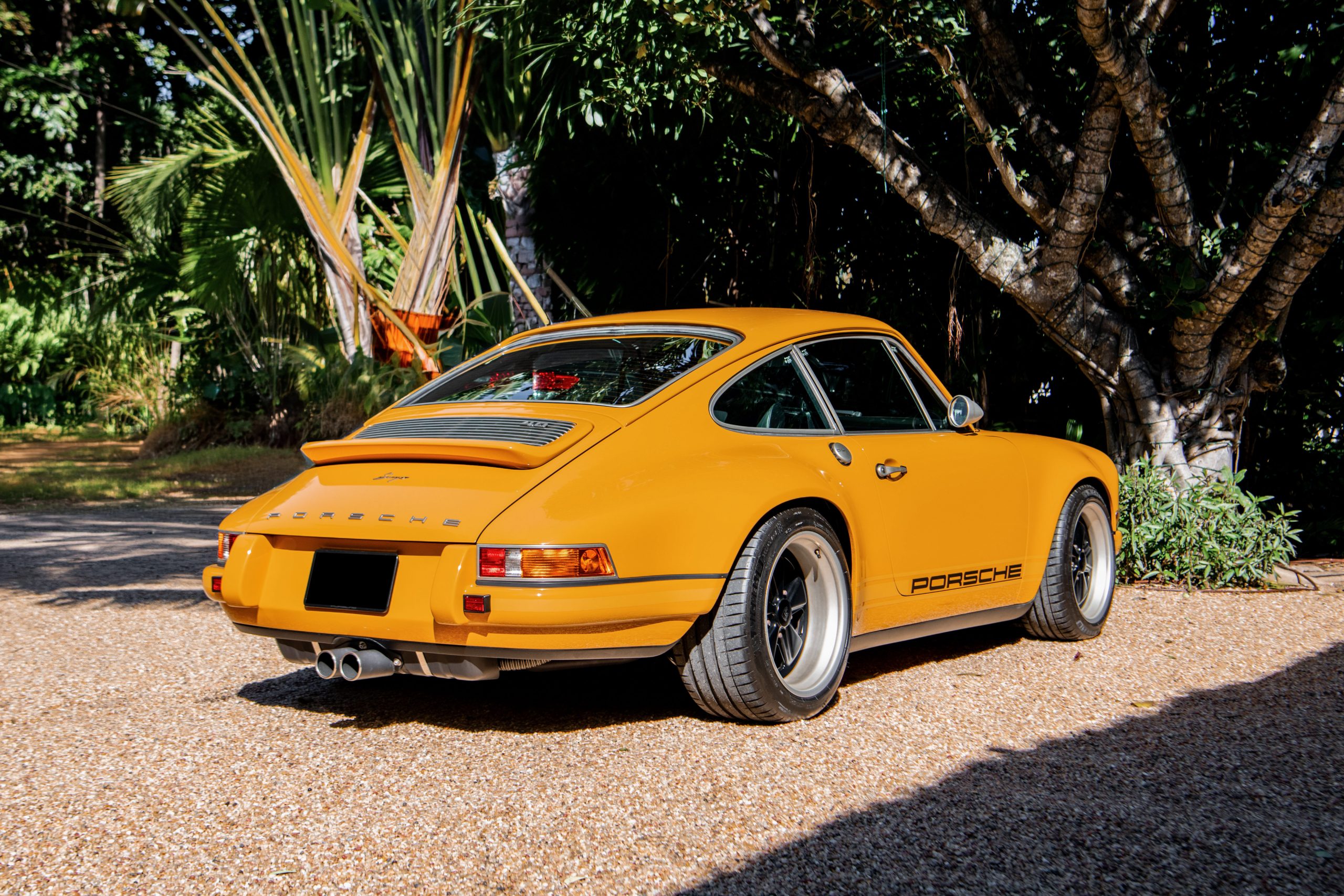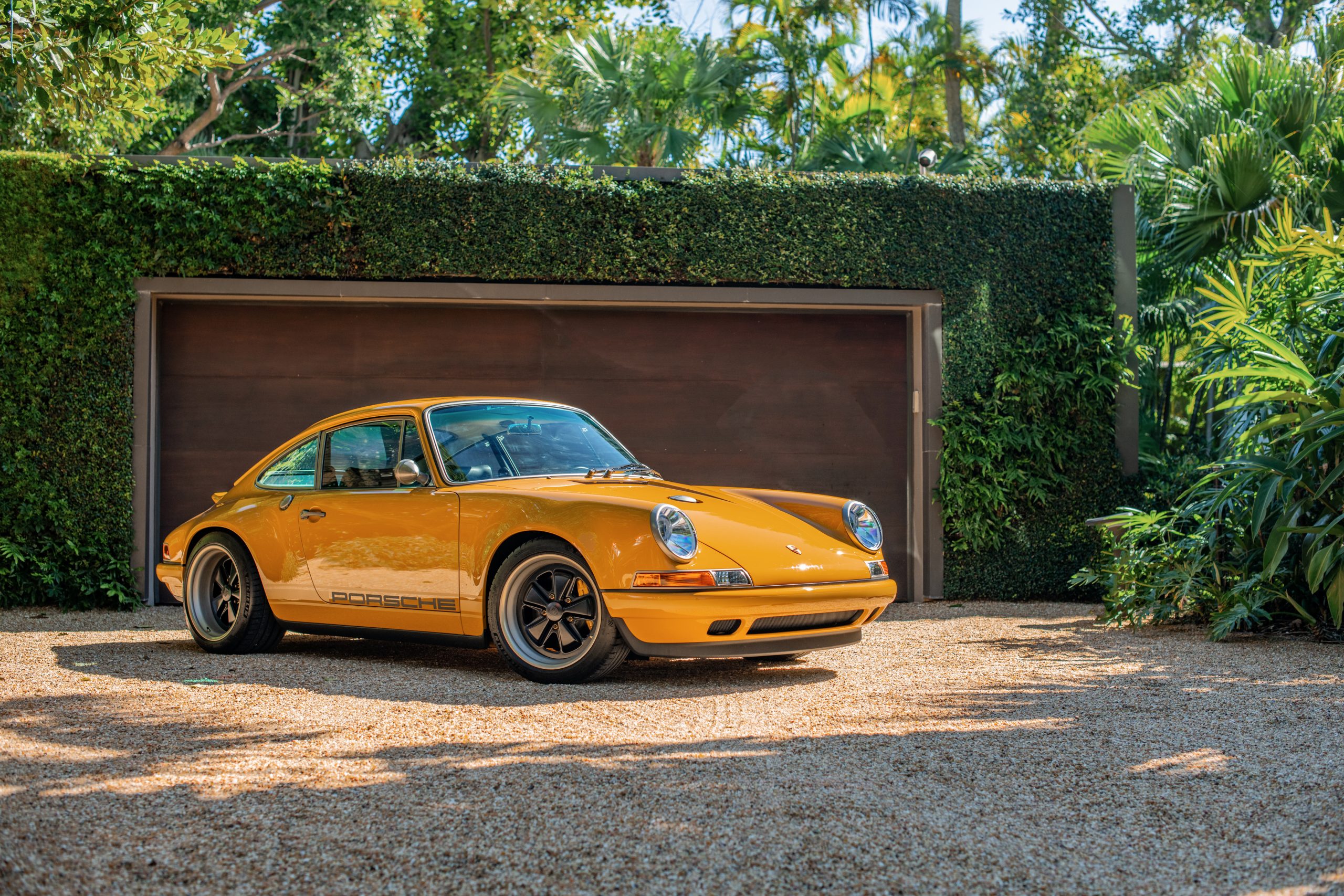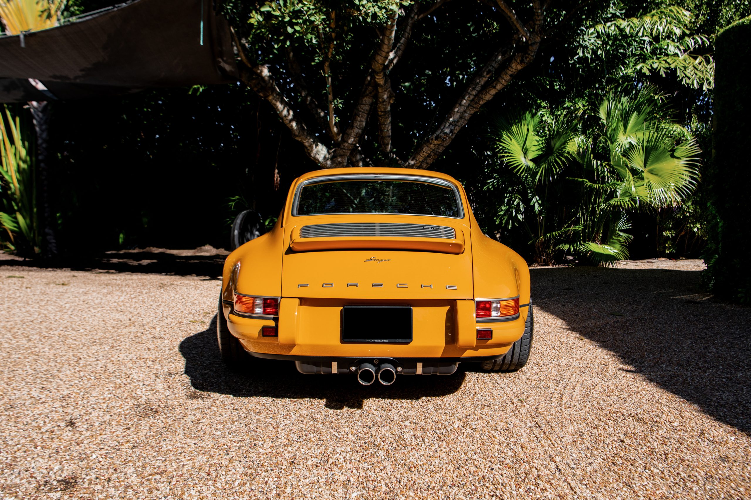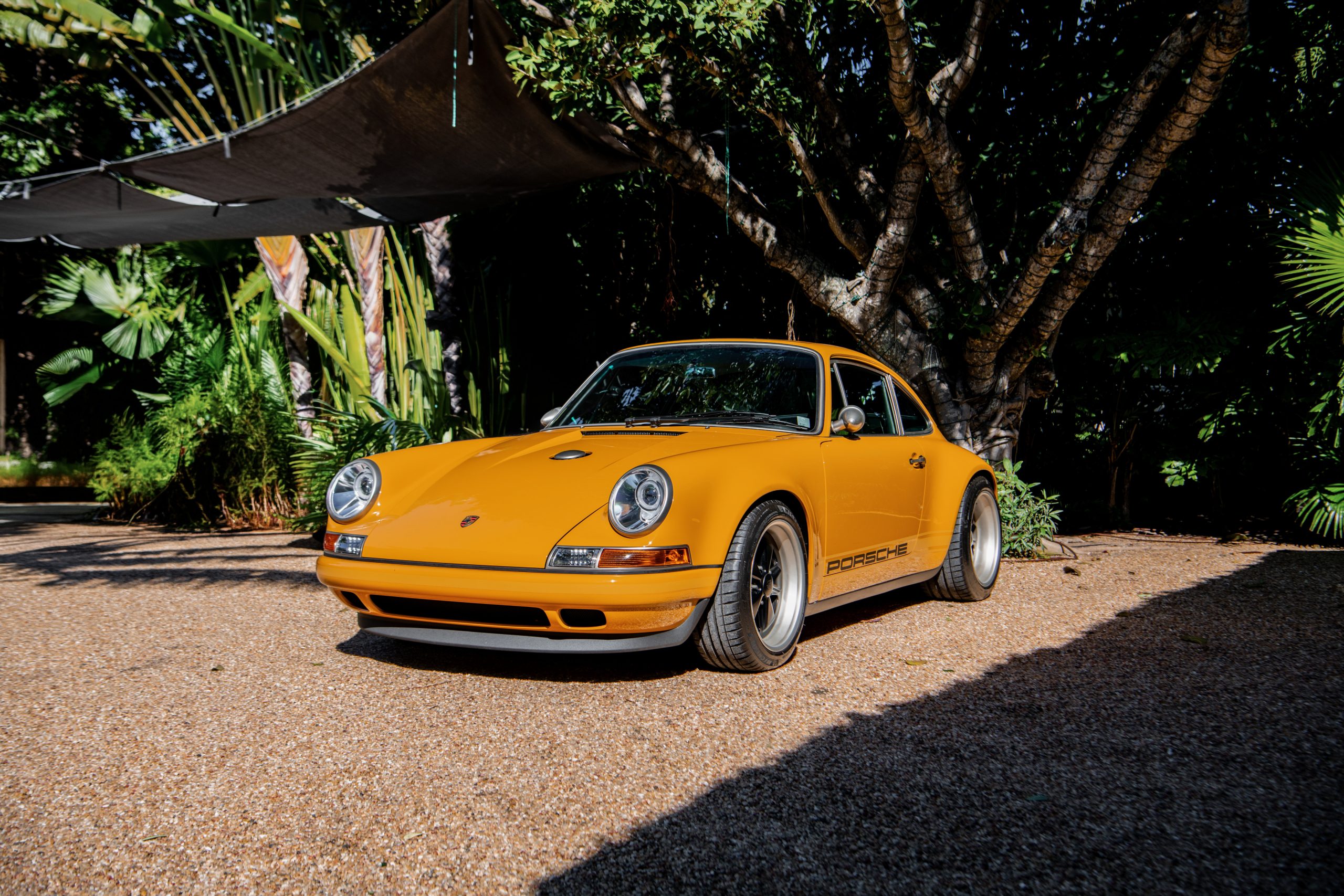 Finished in striking Bahama Yellow with subtle Ghosted Light rocker stripes and Porsche script, the car blends classic styling with modern craftsmanship. Details like polished-lip Fuchs wheels, center fuel filler, external oil filler, and backdated mirrors give it a timeless presence.