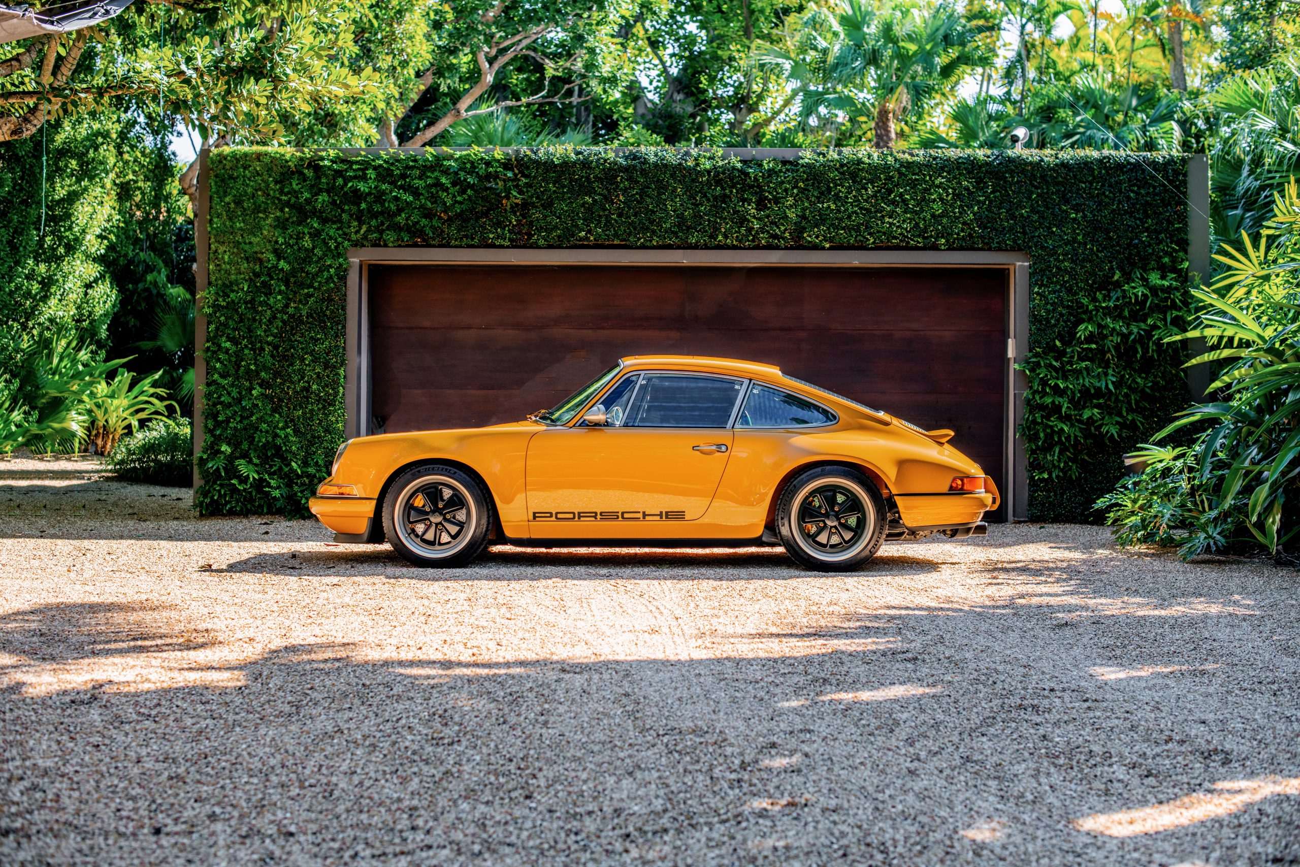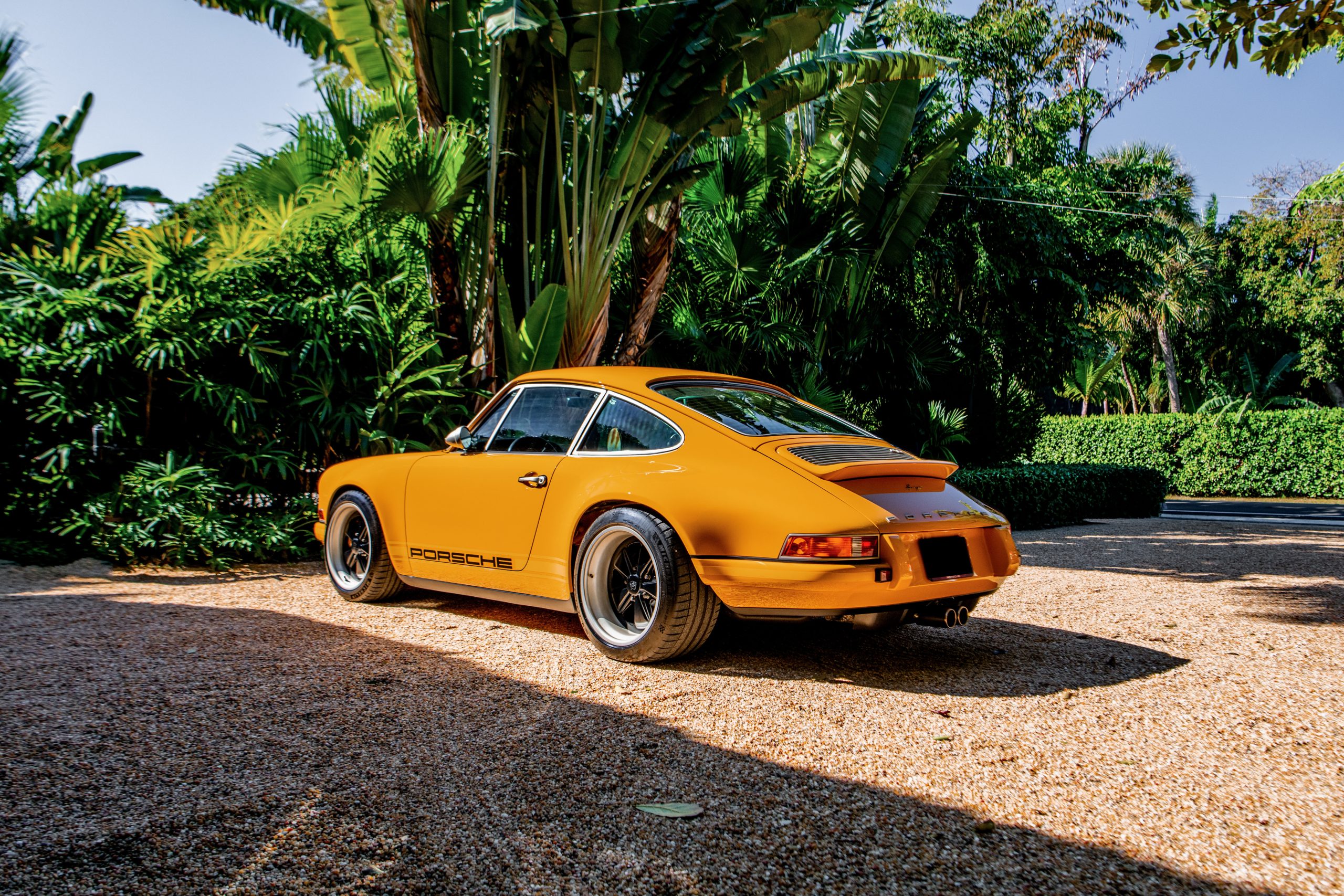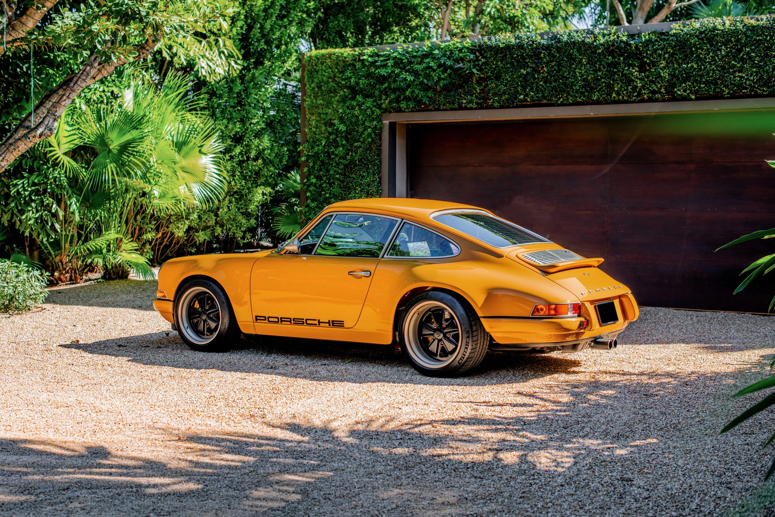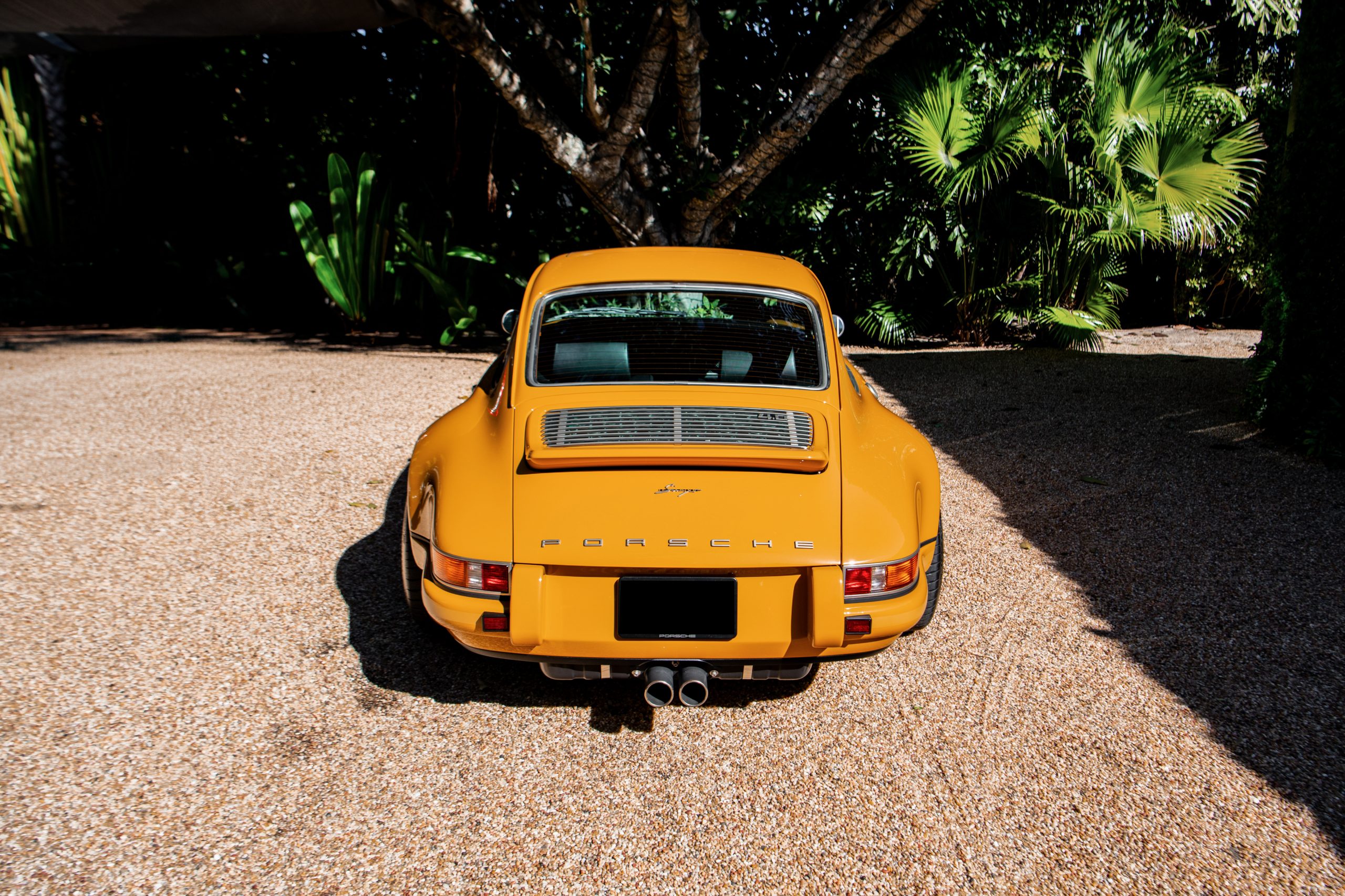 Finished in striking Bahama Yellow with subtle Ghosted Light rocker stripes and Porsche script, the car blends classic styling with modern craftsmanship. Details like polished-lip Fuchs wheels, center fuel filler, external oil filler, and backdated mirrors give it a timeless presence.