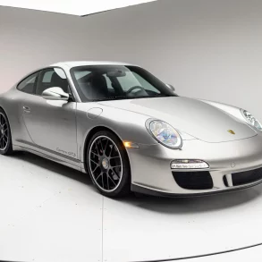 This 2025 Porsche 718 Cayman GTS 4.0 is finished in Chalk over black leather and Race-Tex with Carmine Red stitching and is powered by a 4.0-liter flat-six linked with a six-speed manual transaxle and a locking differential.