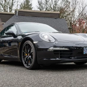 Equipment includes 20″ 911 Turbo alloy wheels, a black convertible soft top, bi-xenon headlights, quad exhaust outlets, ParkAssist, heated and ventilated power-adjustable front seats, Porsche Entry and Drive, a back-up camera, a Bose sound system, and dual-zone automatic climate control.