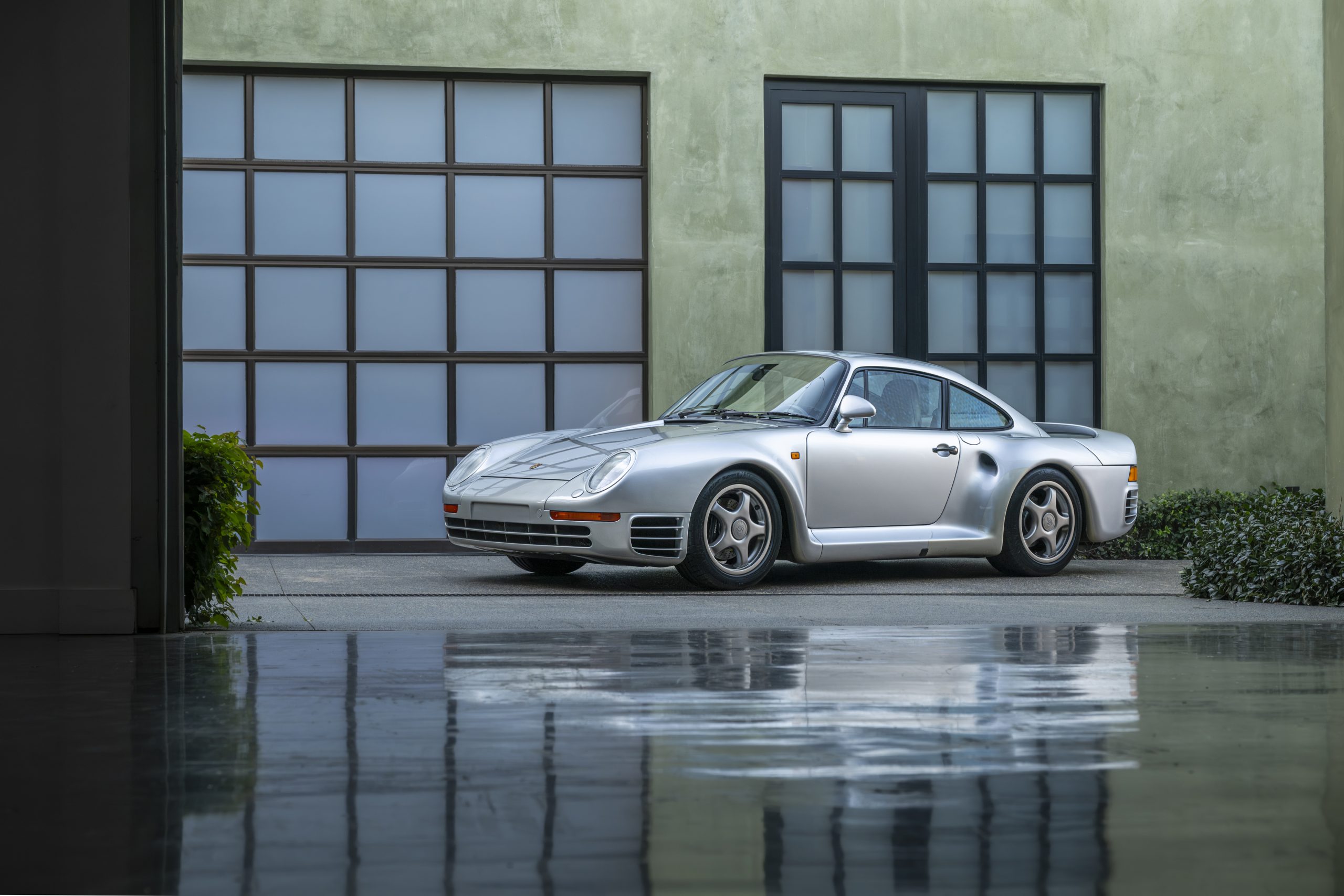 One of only 292 examples built, this 1988 Porsche 959 Komfort was completed in July 1987 and is finished in its factory colors of Polar Silver over a rare tri-tone Dark Grey full leather interior, with Silver wheels, heated seats, and an alarm system. It shows just 2,011 miles at the time of cataloguing.