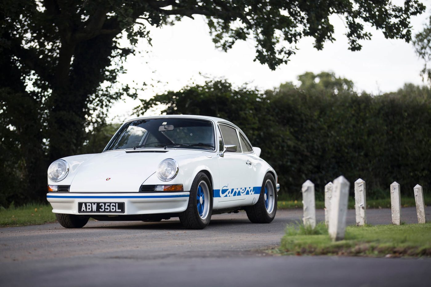 Unique Features: Fixed RS-style ducktail spoiler, double-bubble roof, bespoke Sport Grey & Club Blue livery, 18″ forged Fuchs wheels, PCA interior accents