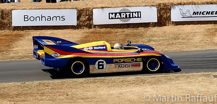 Some of the entrants race up the hill to set a time and try and “win the hill-climb.” Others cruise up at a more leisurely pace, no doubt hesitant to push some of the cars that hard, as they are very valuable. Some are real showmen, and do donuts, spins, bike wheelies etc, and while some entrants drive their own cars, others hire pros to come in and drive. Porsche had brought in many of their former drivers to drive, such as John Fitzpatrick, Manfred Schurti, Derek Bell, etc.