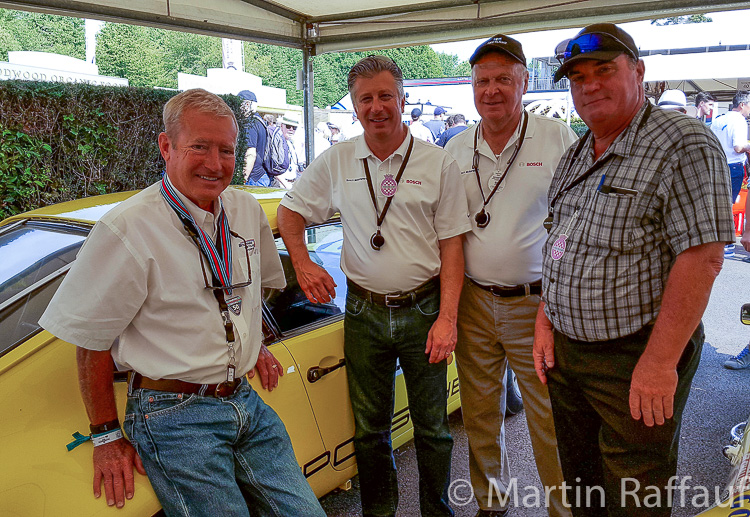 This year, a group of us got together to attend: myself, Bernhard Bihr (CEO of Bosch Electronics Group); Mike Mansuetti (President of Bosch USA), Keith Andrews (Regional President Bosch Electronics USA), Wolfgang Hustedt (Bosch Racing USA consultant), Wölfram Gocken (Director of Power Train Projects Bosch Electronics Group), and my brother Mark Raffauf (Senior Director of IMSA). We based ourselves in Portsmouth, England, and drove out to the Goodwood estate each day.