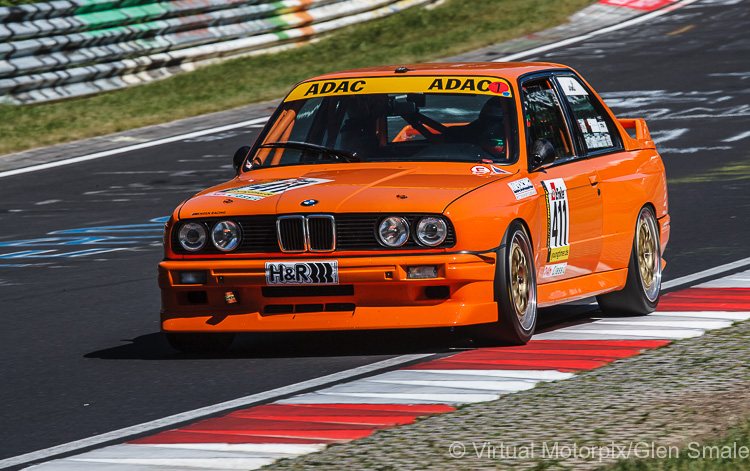 Thursday’s qualifying round was really wet, and with so many of the older cars being tail-happy, there were spins and incidents a-plenty. For this session, I positioned myself at Turn 1 opposite the striking Mercedes Arena. The 3-hour race on Friday was quite the opposite, with warm and dry weather with clear blue skies. For this session, I made my way out to Brünchen, a delightful complex of fast downhill twists and turns that provided a fine display of each car’s capabilities.