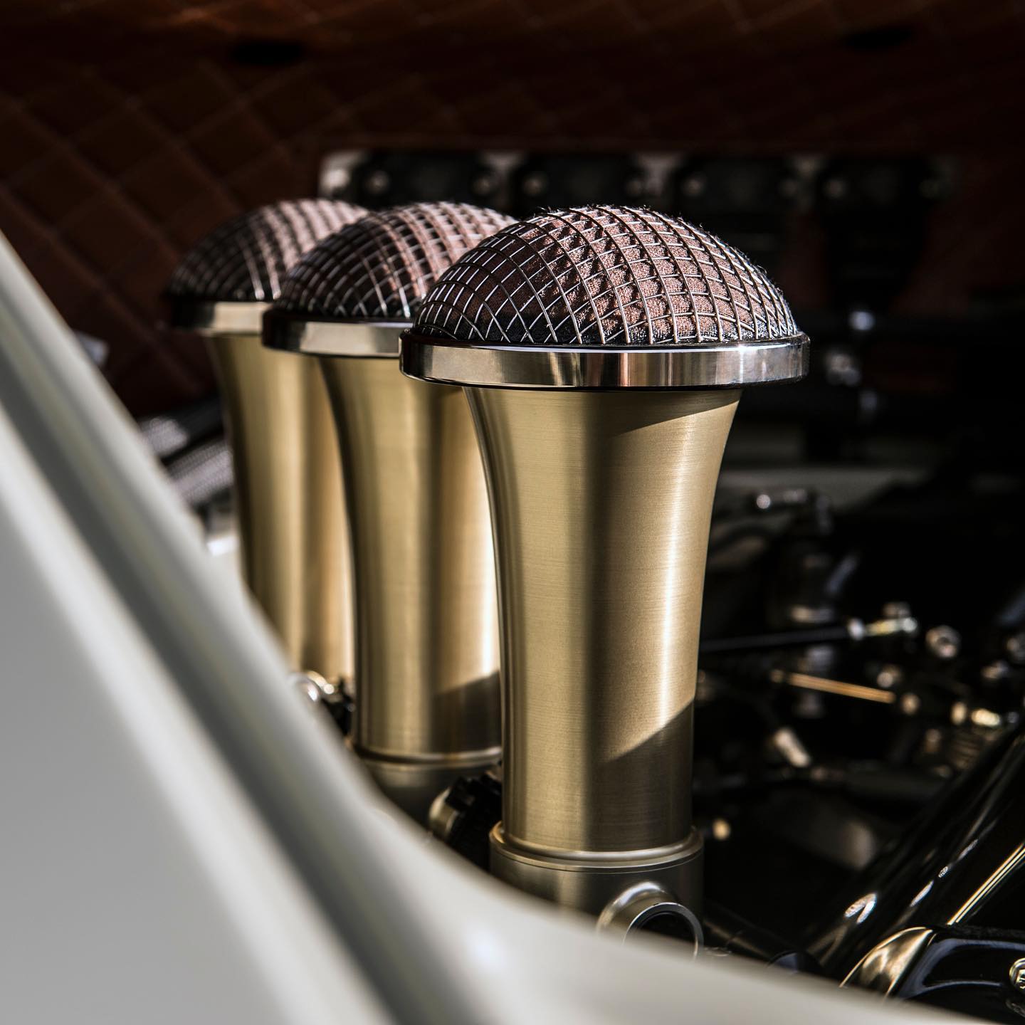 Today, we take a closer look at the Singer Vehicle Designs Atlanta Commission. Stone Grey over Cognac. Champagne gold velocity stacks. Ebony wood shifter with Singer Racing Orange shift pattern. Alabaster stitching.