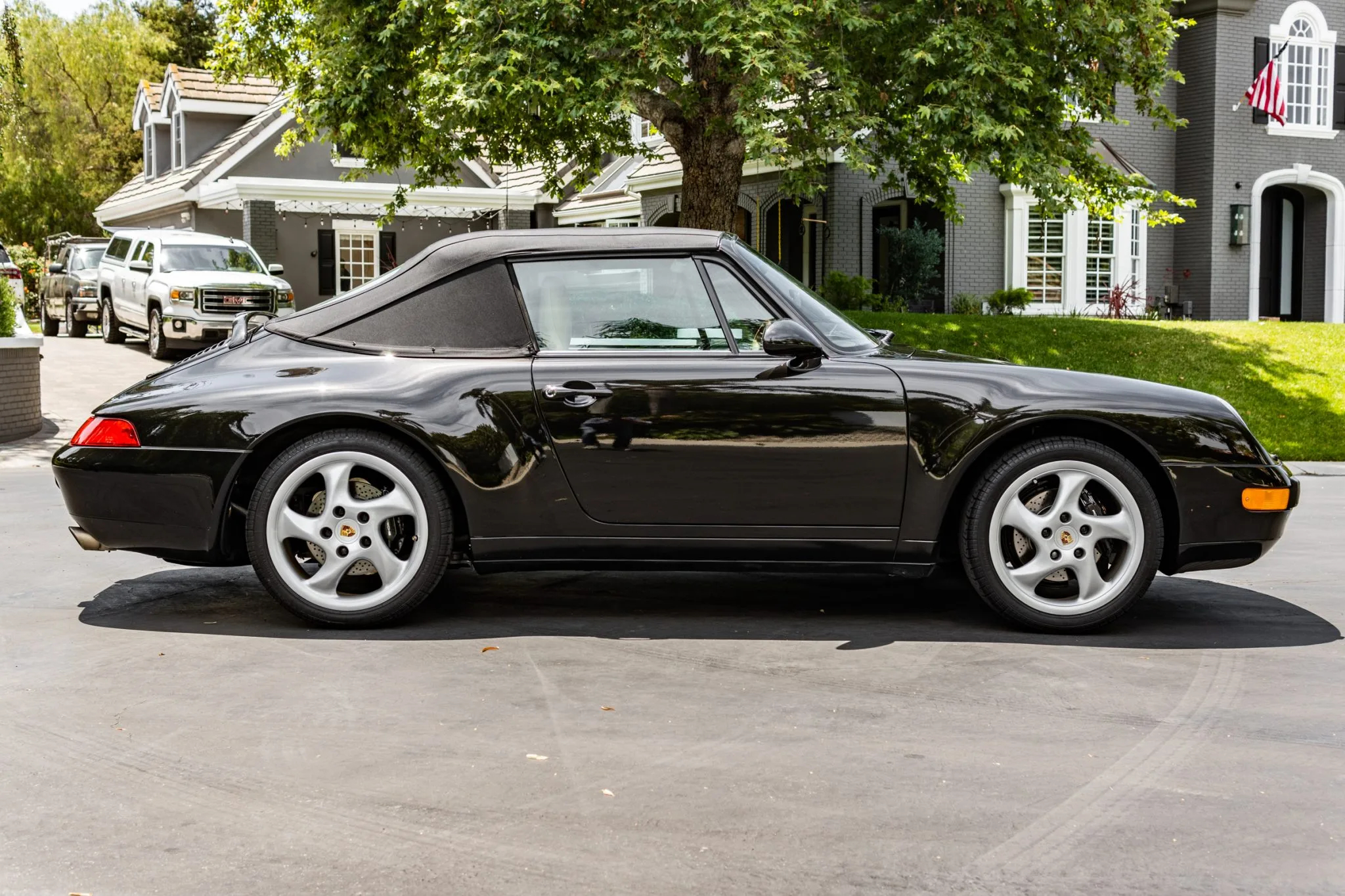 Since the 1998 Porsche 911 Carrera Cabriolet was purchased by the consigner back in 2003 it has been registered in California. It has a Black Metallic (L744) finish with a power-operated black soft top. Other exterior features are fog lights, headlight washers, power-adjustable mirrors, rear “basket handle” spoiler, speed-activated rear spoiler, and dual exhaust outlets. In April 2022, the soft top transmissions were replaced.