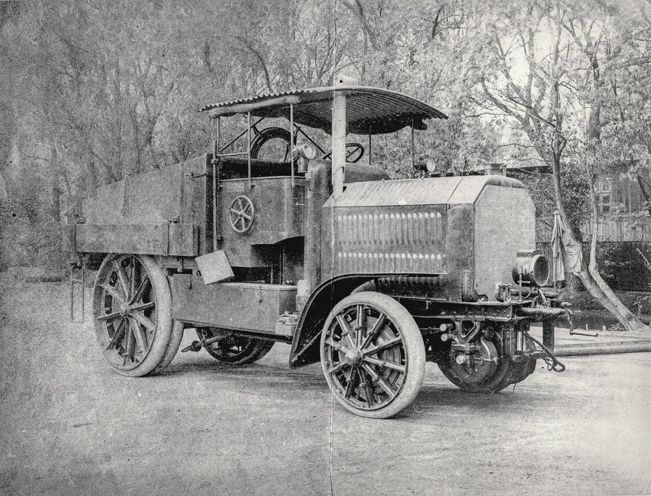 A-zug, Austro Daimler, B-zug, C-zug, Ferdinand Porsche, M17-80hp, Rabe, Zugwagen M12 In July 1906, 30-year-old Ferdinand Porsche, who had previously worked for the small Austrian company Lohner, joined Austro-Daimler as chief engineer. He brought with him his development of the so-called “mixed or hybrid drive”—the Mixte: an internal combustion engine that only drove a generator, which generated current to power the traction electric motors. That same year, 1906, Austro-Daimler gained complete independence from the German company Daimler-Motoren-Gesellschaft and began developing its own original designs. By this time, the company had built the 60/80PS (4×4) artillery tractor, or M06, with an 80-horsepower engine and individual cardan drives for each drive and steering wheel. It was designed by Archduke Leopold Salvator of Habsburg-Lothringen, and hence these vehicles are known as “Daimler-Salvator.” In 1908–09, further developments of this design resulted in the 80-horsepower M08 and M09 (4×4) tractors in various versions, named Bison, Jaguar, and Wisent. The heaviest, 90-horsepower Goliath, was equipped with a crane and repair equipment. M09 (4×4)