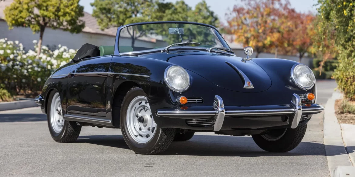 This 1960 Porsche 356B Roadster was built on October 5th, 1959 and originally delivered to Porsche Car Pacific of San Francisco, California. The car is powered by a replacement 1600S flat-four paired with a four-speed manual transaxle, and it has been refinished in black over green leather upholstery. Equipment includes...
