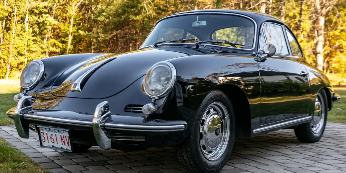 This 1964 Porsche 356C coupe was acquired by the current owner in 2002, and it is powered by a 1.6-liter flat-four paired with a four-speed manual transaxle. The car is finished in black over red leatherette, and features include 15″ steel wheels, disc brakes, body-color bumpers, twin engine grilles, front...