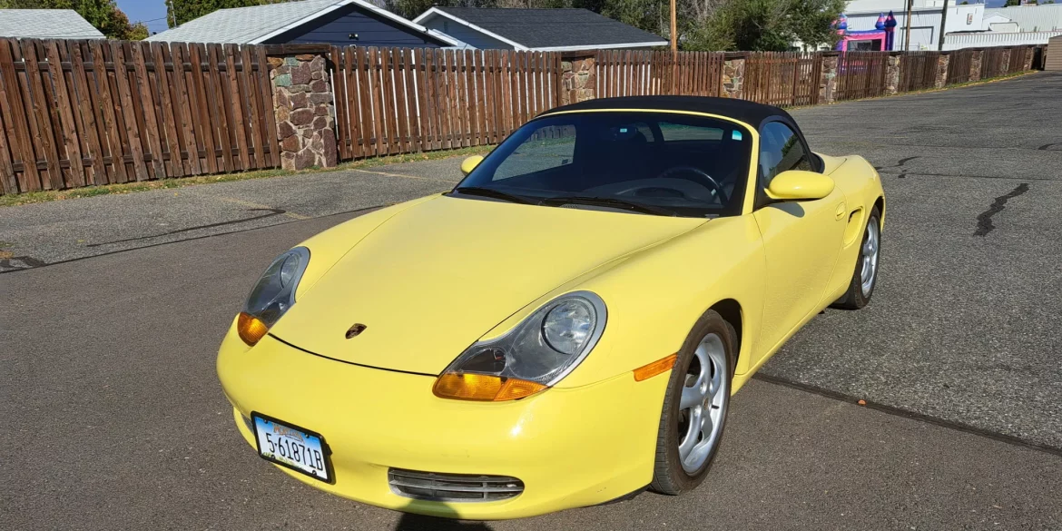 This 1998 Porsche Boxster is finished in Pastel Yellow over black partial leather and has 55k miles. It is powered by a 2.5-liter flat-six paired with a five-speed manual transaxle and is equipped with the Sport Package, a black soft top, a speed-activated rear spoiler, and 17” Carrera-look twist-spoke wheels...
