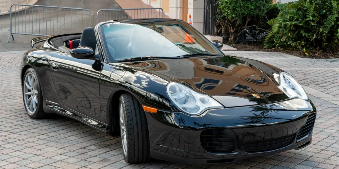 This 2005 Porsche 911 Carrera cabriolet is finished in black over black full leather and is powered by a 3.6-liter flat-six paired with a six-speed manual transaxle. Equipment includes a black soft top, 19″ alloy wheels, bi-xenon headlights, a deployable rear spoiler, heated power-adjustable front seats, automatic climate control, navigation,...