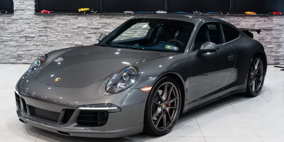 This 2014 Porsche 911 Carrera 4S coupe is finished in Agate Gray Metallic over Yachting Blue Standard leather and was ordered with over $30k in options. Powered by a 3.8-liter flat-six linked with a seven-speed PDK transaxle, the car is equipped with the Premium, Bose Audio, Sport Chrono, and Brushed...