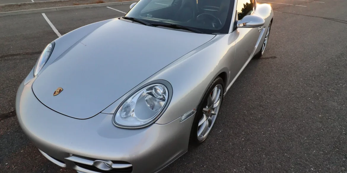 This 2006 Porsche Cayman S has remained registered in California since new and now has 49k miles. It is powered by a 3.4-liter flat-six paired with a six-speed manual transaxle and is finished in Arctic Silver Metallic over Black Standard leather. Equipment includes a deployable rear spoiler, 19″ Carrera Sport...