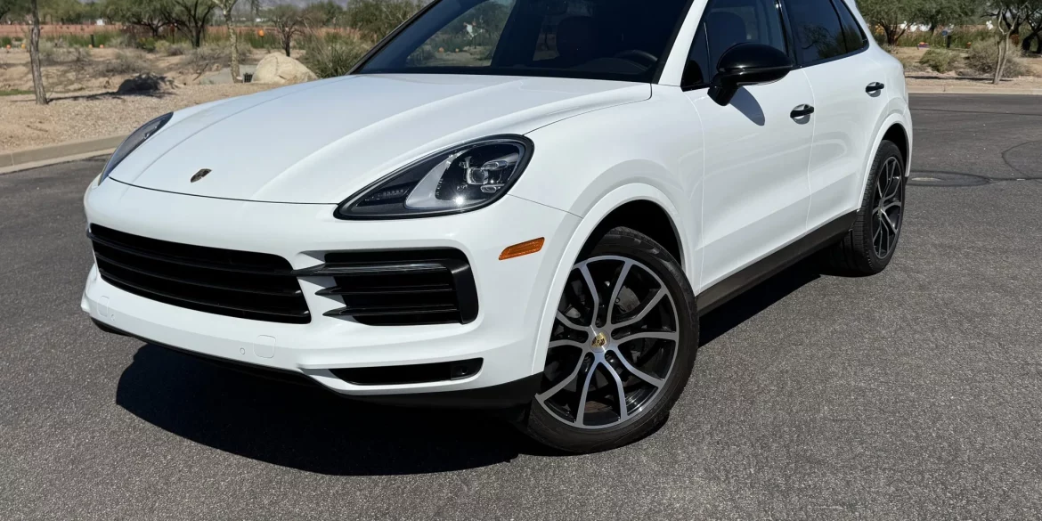 This 2019 Porsche Cayenne S is finished in White over Bordeaux Red leather and is powered by a twin-turbocharged 2.9-liter V6 that drives all four wheels through an eight-speed automatic transmission. Equipment includes the Premium Package, 21″ Cayenne Exclusive Design wheels, PASM dampers, a panoramic sunroof, a Bose surround-sound system,...