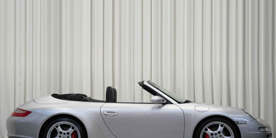 2006 Porsche 911 Carrera S Cabriolet in Arctic Silver Metallic over Black with only 19,483 miles. This Carrera S is loaded with: 3.8 Liter H6, 6 speed manual transmission, 19 inch “lobster claw” wheels, wheel caps with Porsche crests, stainless steel exhaust pipes, full leather interior, power seat package, Porsche crests...