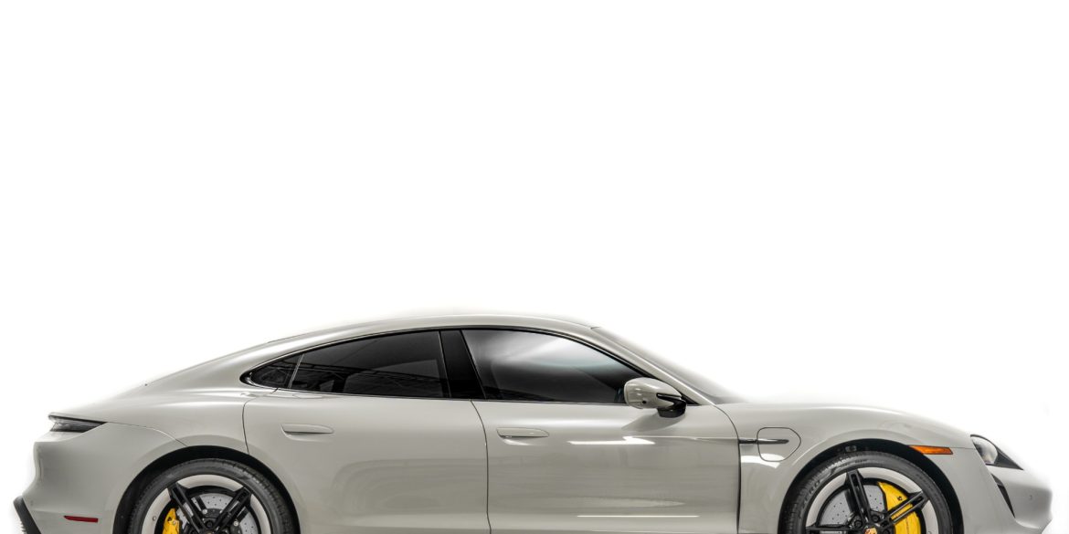 2021 Porsche Taycan Turbo S in Chalk over Chalk and Black leather interior with only 29,845 miles. This Taycan is loaded with: 750 Horsepower electric motors, 21 inch Taycan Exclusive design wheels with carbon fiber aero blades, wheel caps with colored crests, fixed panoramic roof in glass, premium package (surround view cameras, thermally...