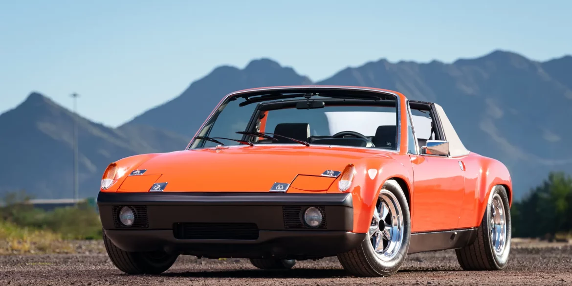 This 1974 Porsche 914 was modified under prior ownership with work that included repainting the red exterior and installing a fuel-injected 3.2-liter flat-six mated to a type 901 five-speed manual transaxle and limited-slip differential. GT-style fender flares, fiberglass bumpers, rocker panels, and a front valance were fitted, as were balsa...
