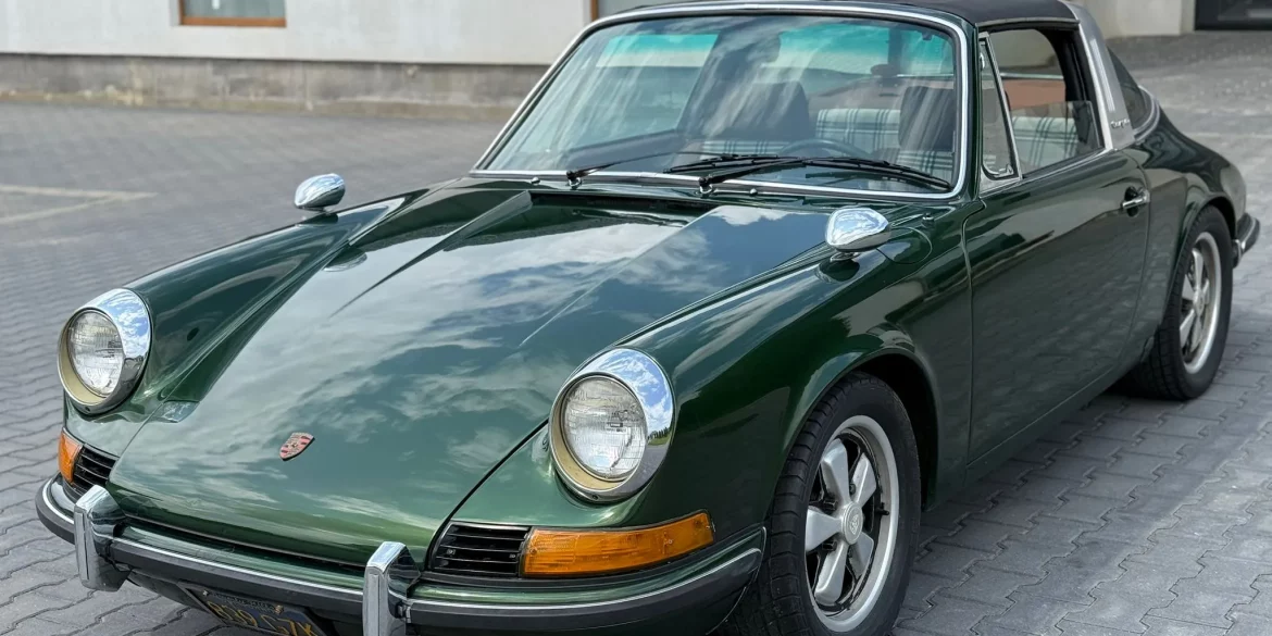 This 1973 Porsche 911T Targa was sold new in California and was brought to Europe by the selling dealer in 2022. It is finished in metallic green over brown leather and plaid cloth upholstery and is powered by a replacement 2.4-liter flat-six equipped with dual Weber carburetors and linked with...