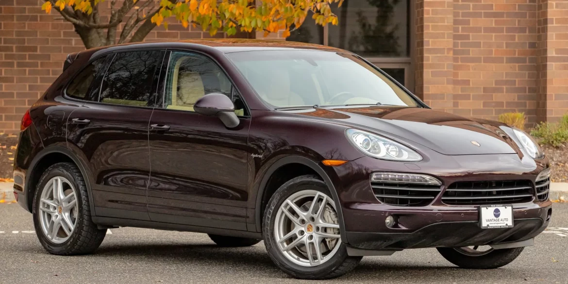 This 2011 Porsche Cayenne S was specified in Amethyst Metallic over Luxor Beige leather upholstery, and it was optioned with the Premium Package Plus as well as gloss-black exterior trim, 19″ Cayenne Turbo alloy wheels, an extended-range fuel tank, a panoramic sunroof, walnut interior trim, heated and ventilated power-adjustable front seats,...