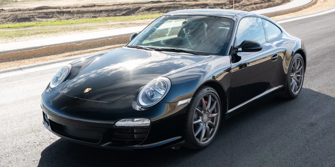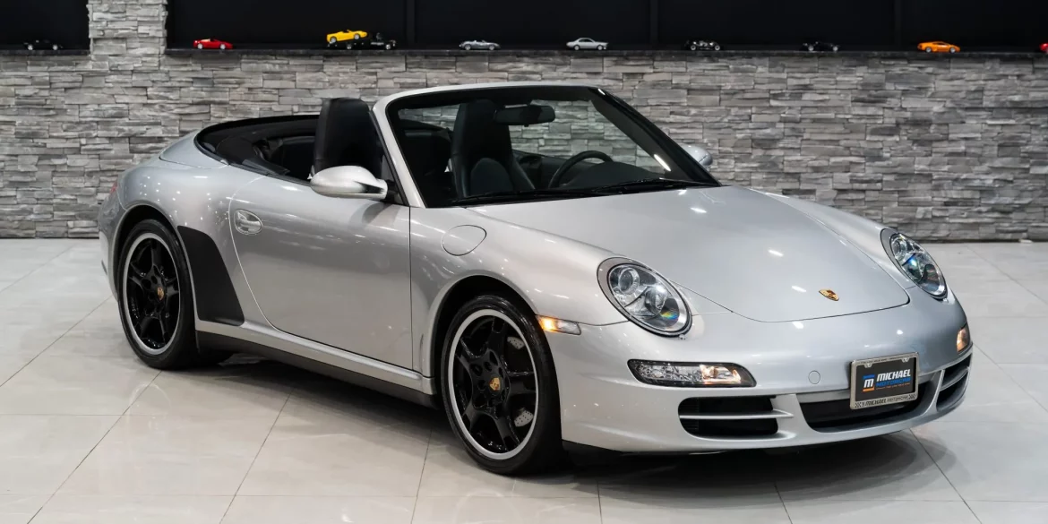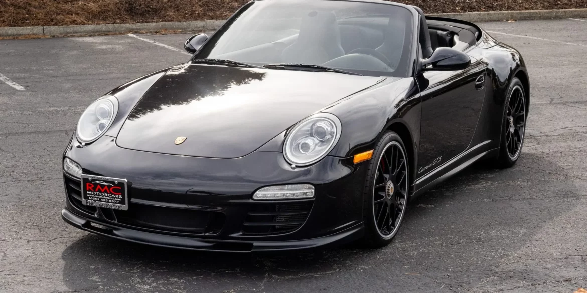 This 2009 Porsche 911 Carrera 4S cabriolet was specified in Meteor Gray Metallic over black leather, and it has 19k miles. Power is from a 3.8-liter flat-six that drives all four wheels through a seven-speed PDK dual-clutch transaxle, and equipment includes the Sport Chrono Package Plus, 19” Turbo wheels, a...