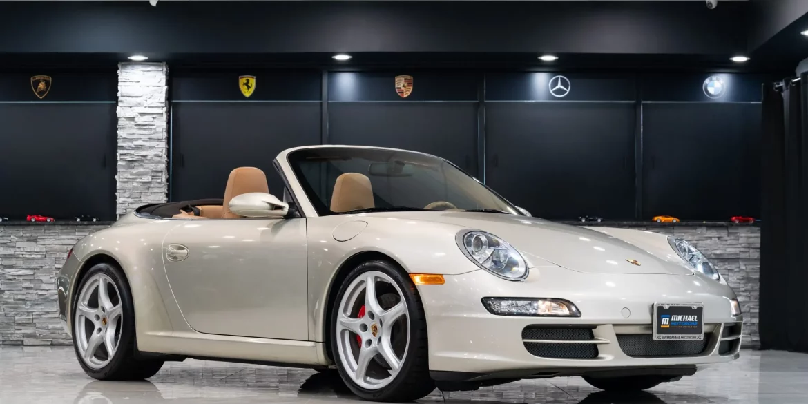 This 2005 Porsche 911 Carrera S cabriolet is finished in paint-to-sample Prosecco Metallic over Sand Beige Full Supple leather and has 59k miles following history in Virginia, Arkansas, Michigan, and Ontario, Canada. Powered by a 3.8-liter flat-six paired with a six-speed manual transaxle, the car is equipped with the Bose...