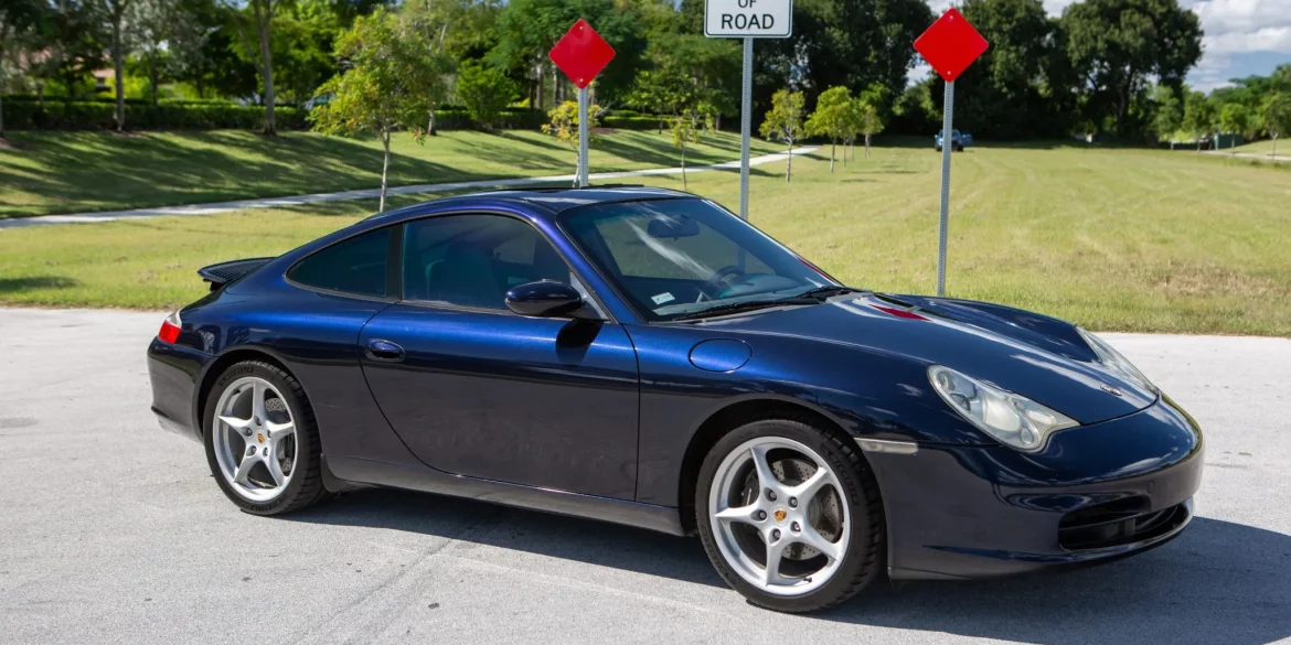 This 2003 Porsche 911 Carrera coupe is finished in Midnight Blue Metallic over Graphite Grey leather and is powered by a 3.6-liter M96 flat-six paired with a five-speed automatic transaxle. Equipment includes a sunroof, a deployable rear spoiler, 18” Carrera II wheels, a Pioneer head unit, a Bose sound system,...