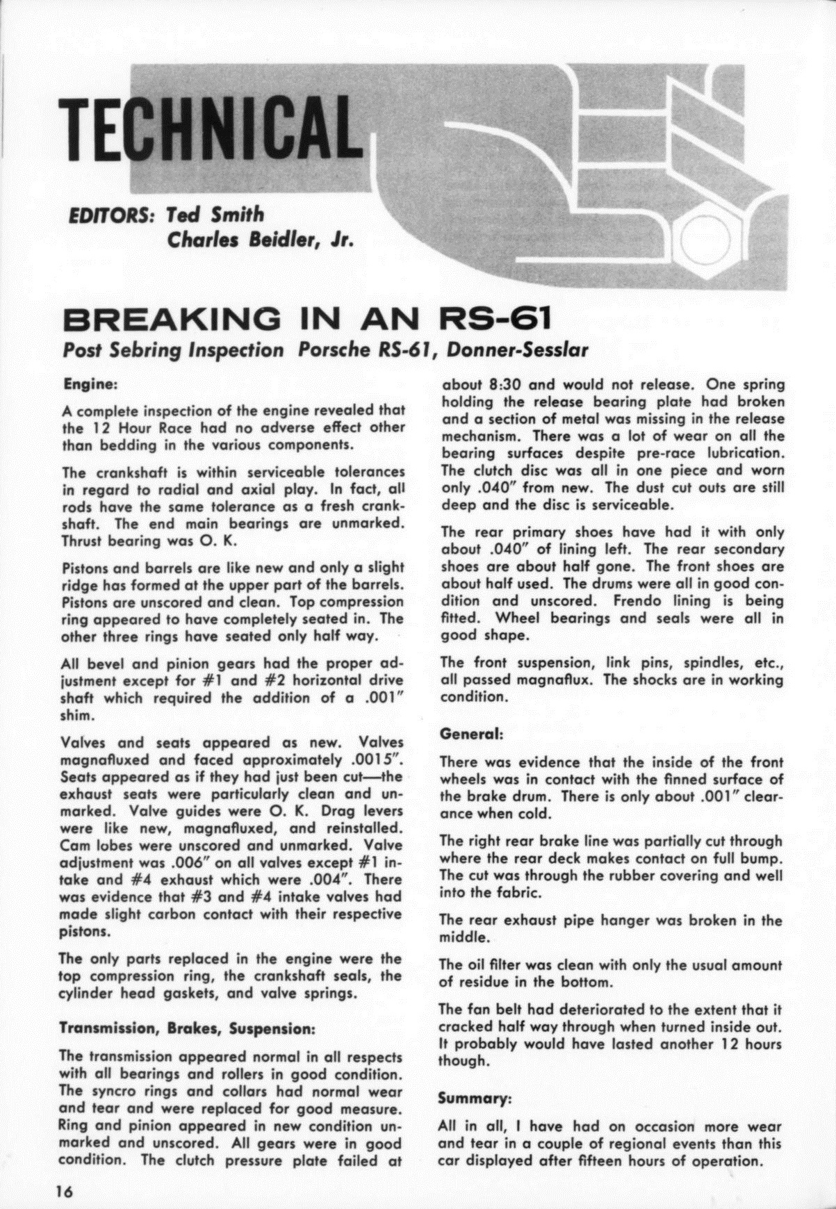 Breaking in an Porsche 718 RS61 (chassis 066) past Sebring 12h Inspection