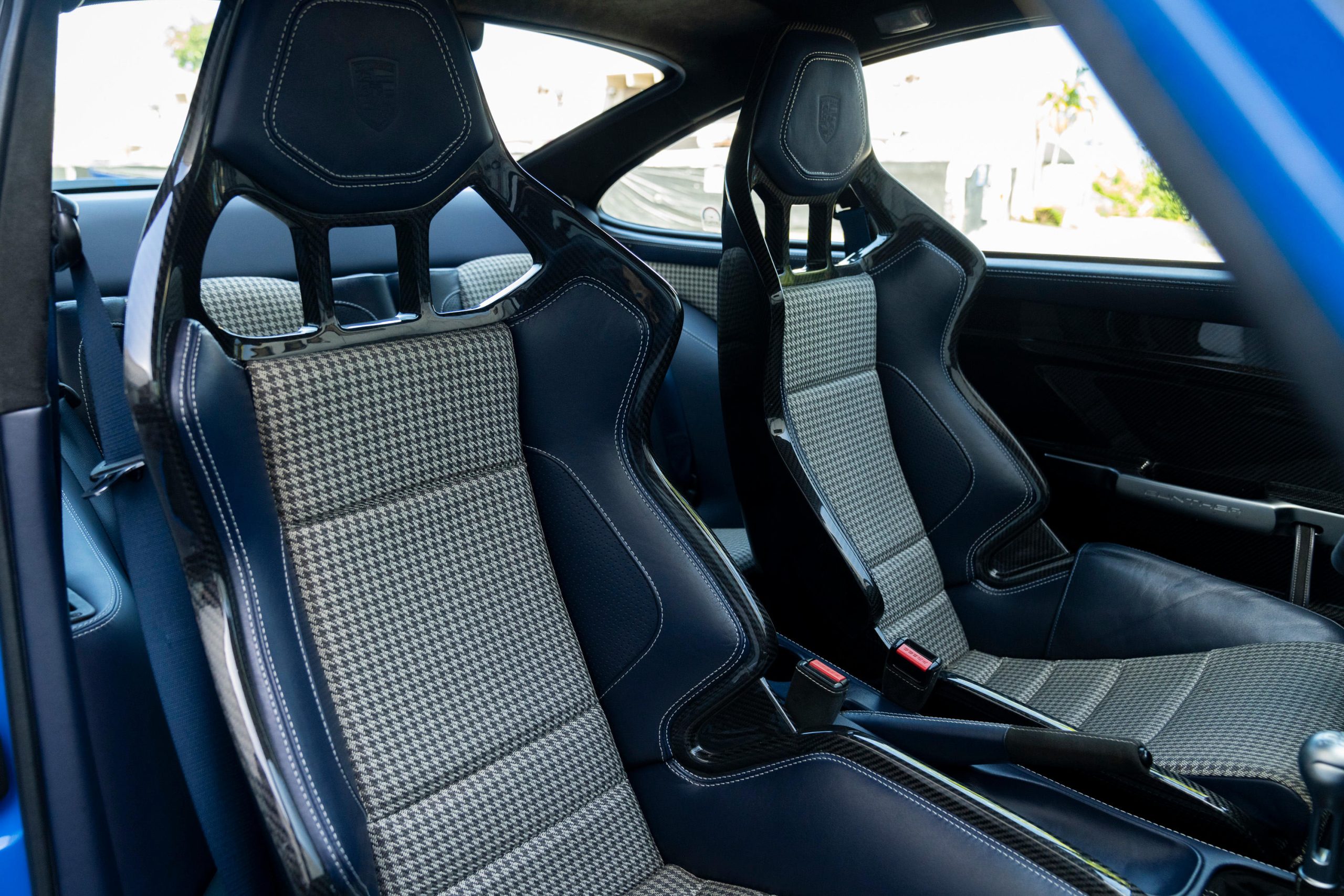 Unique details abound in this project, from classic-style multi-piece alloys to bare carbon mirrors and decklid trim. The cabin features striking carbon sport seats, complemented by Heuer rally chronographs and a custom alloy plinth. Notably, this particular Gunther Werks 993 includes optional rear seats, adding practicality to its performance prowess.