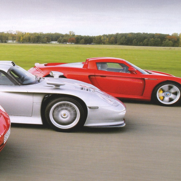 Unlike the 911, which carried the company for four decades, the Carrera GT was complete bottom up design. Its styling was thankfully unchanged from Paris show car and departed from the traditional Porsche shape which the 959 couldn't escape.Motivation for the Carrera GT came directly from Porsche's successful motor sports program and the Porsche WSC-95 Le Mans prototype.