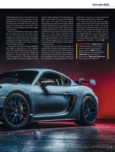 Cayman GT4: 3.8L naturally aspirated flat-6 (385 hp, derived from 991 Carrera S)