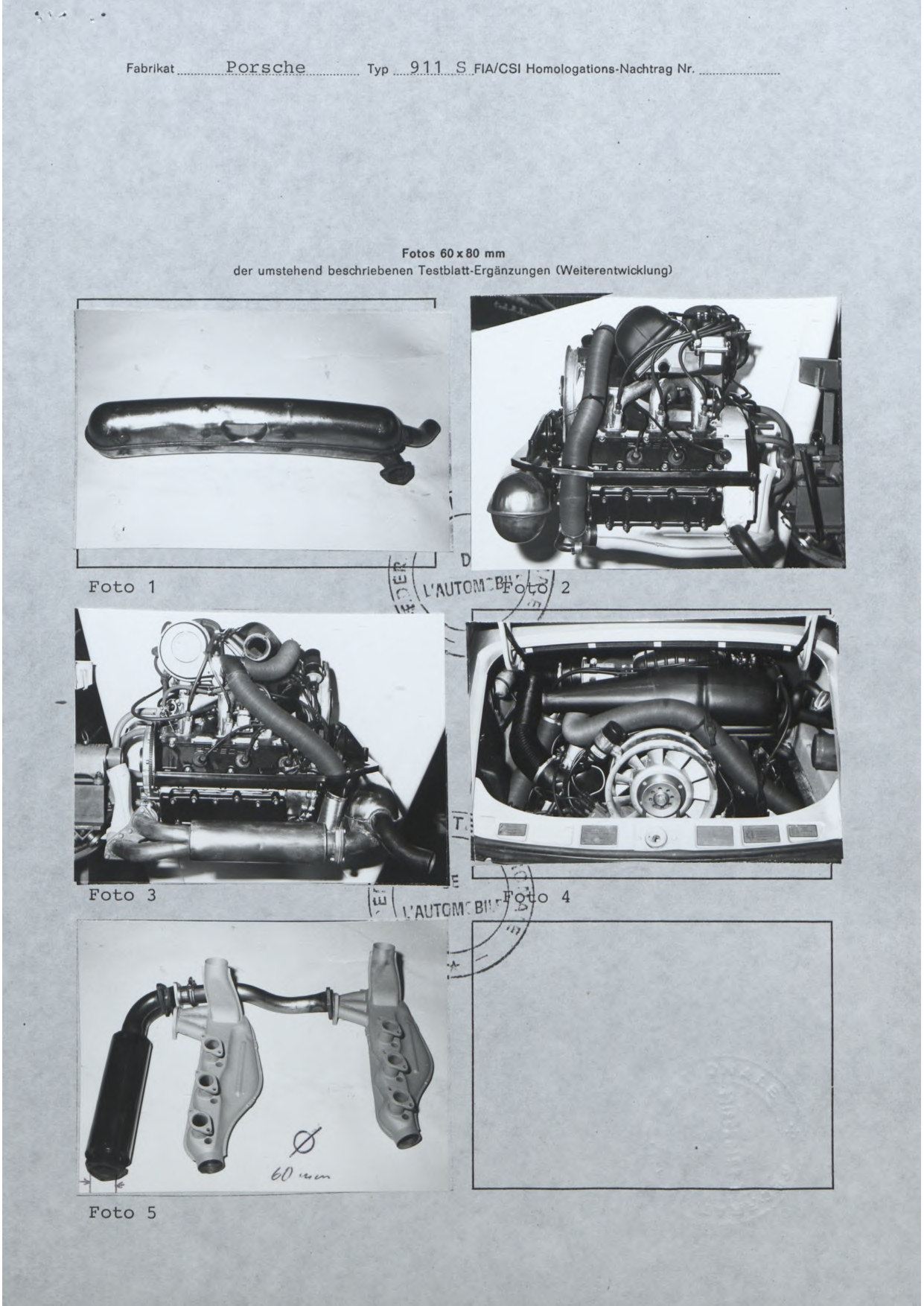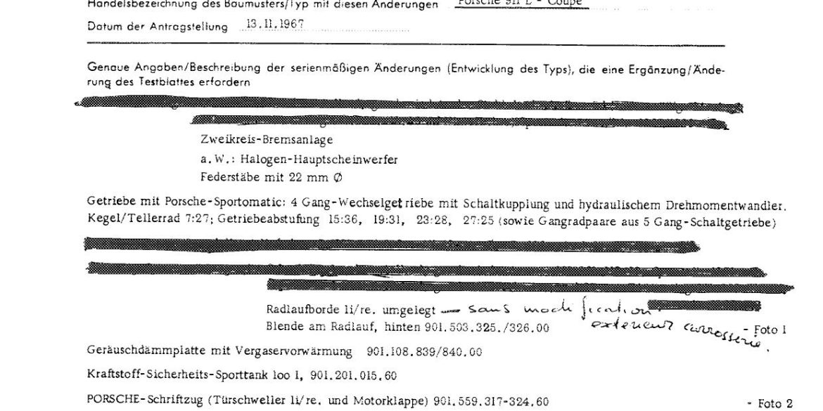 Porsche 911 (F-Series)FIA Homologation Protocol for Porsche-911S 2.2 (Group A 3GT) with additions 911S 2.5 for Group 4, 1969