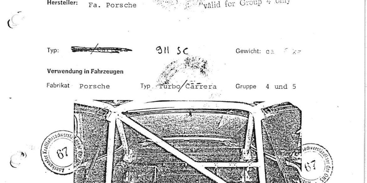 Technical InformationFIA Homologation Protocol for Porsche-911 Carrera 2.7 with 3.0 engine type 911/74 for IROC, 1973
