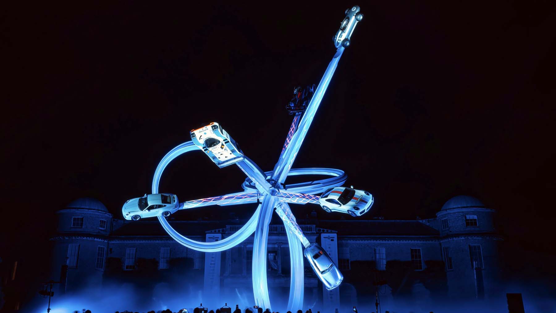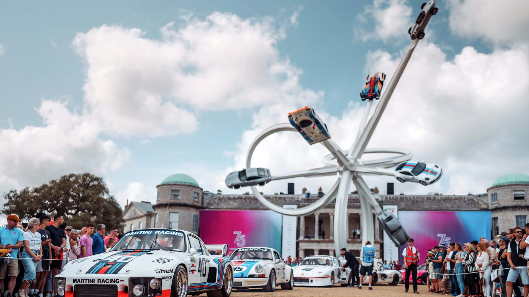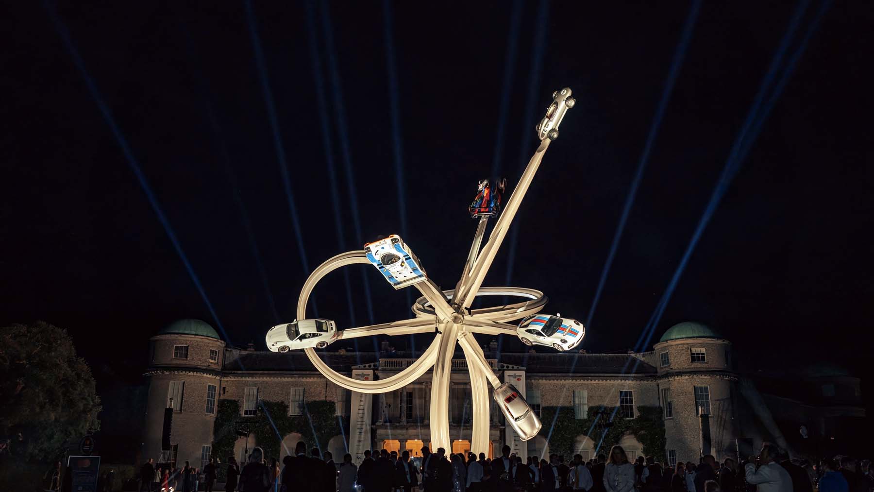 In its fourth recognition as the featured marque at the prestigious Festival of Speed, Porsche was given the exclusive privilege of showcasing a custom-designed sculpture gracing the grounds of the historic Goodwood House. The monumental display was the brainchild of renowned London-based artist Gerry Judah. Crafted from a staggering 50 tons of steel, the sculpture came alive with the inclusion of six distinguished cars, each emblematic of the milestones in Porsche’s illustrious 75-year history. The line-up featured a 1951 356, a 1960 718 Formula 2, a 1990 962C, a 2009 911 type 997 Sport Classic, a 963, and the newest addition to the fleet, the 911 type 992.